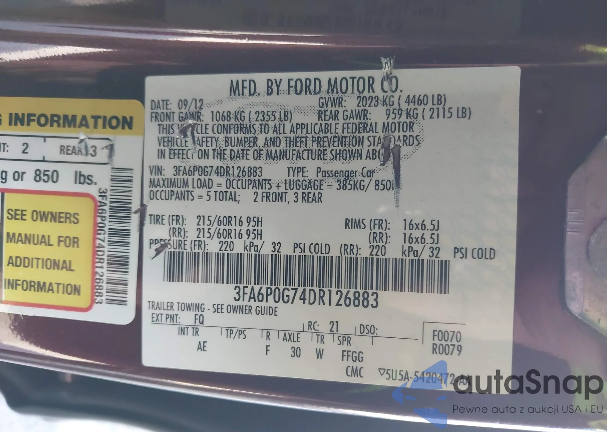 VIN: 3FA6P0G74DR126883