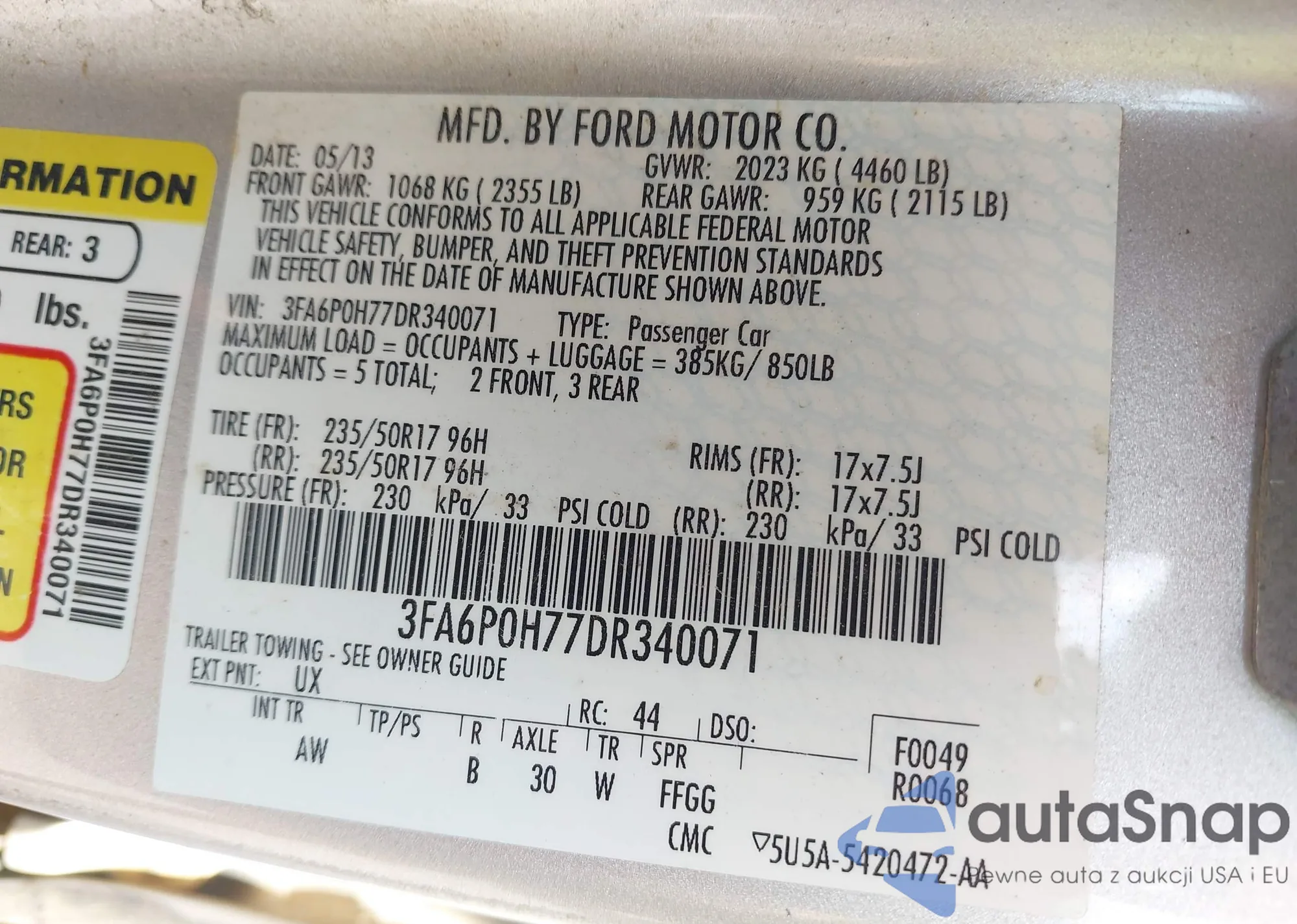 VIN: 3FA6P0H77DR340071