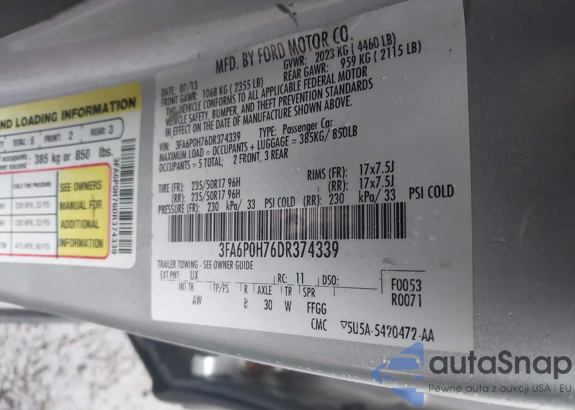 VIN: 3FA6P0H76DR374339