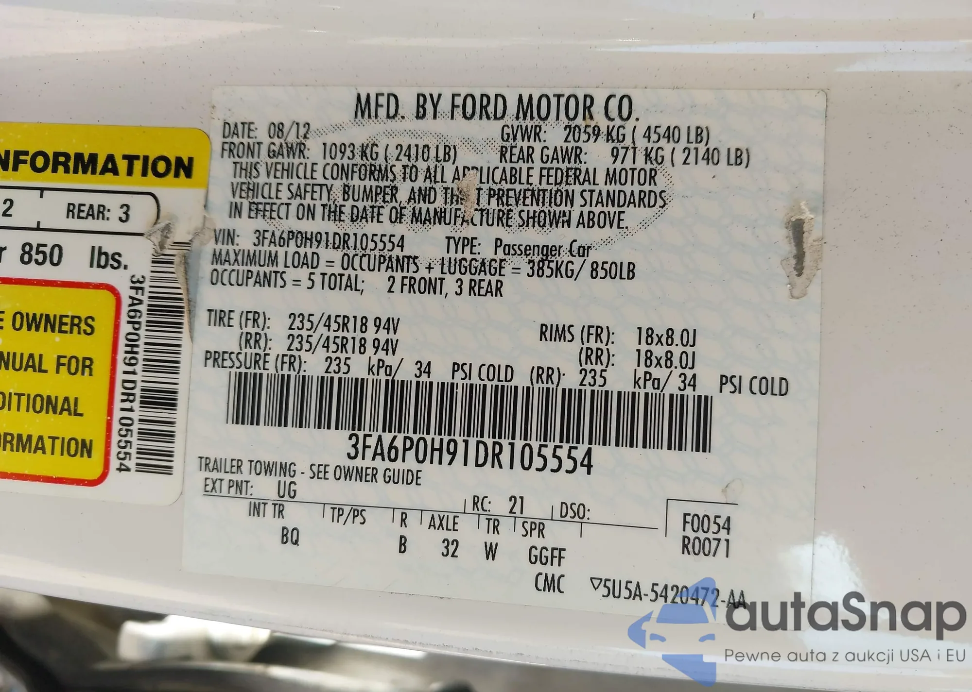 VIN: 3FA6P0H91DR105554