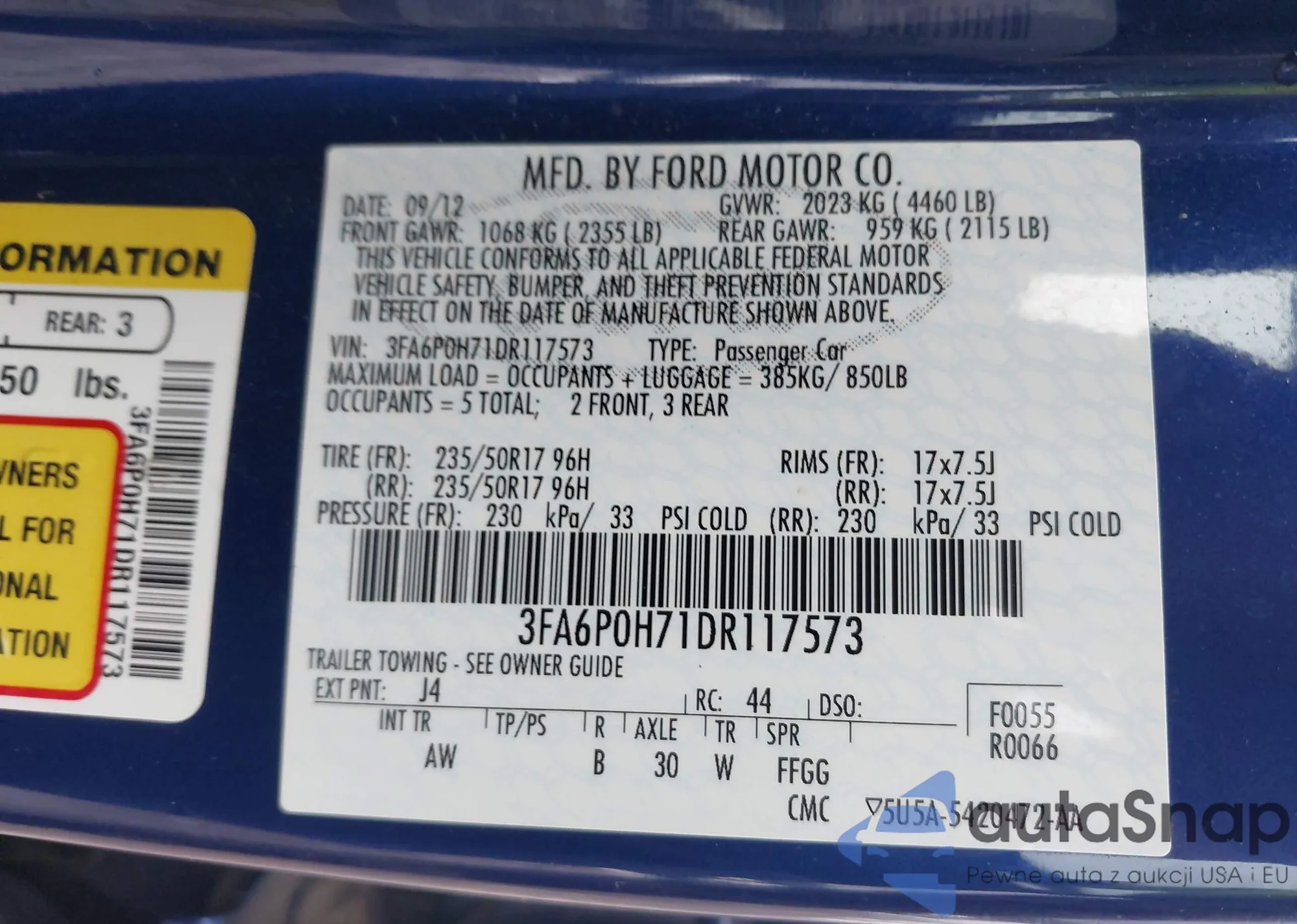 VIN: 3FA6P0H71DR117573