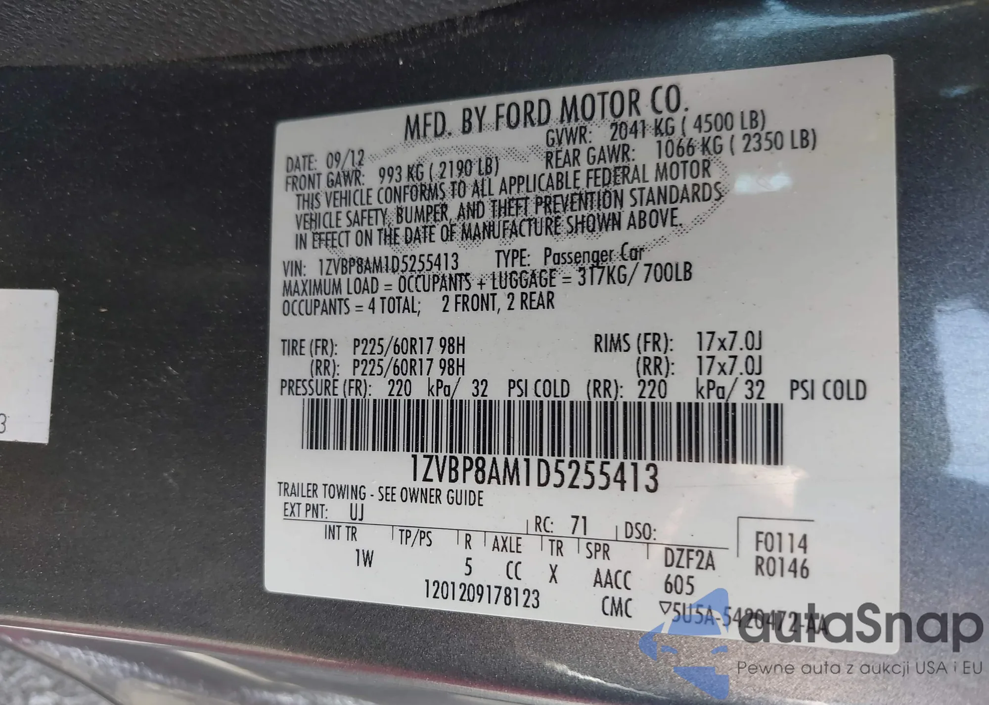 VIN: 1ZVBP8AM1D5255413