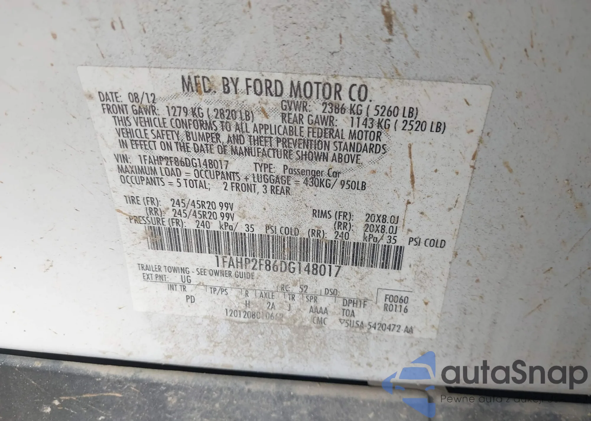 • VIN: 1FAHP2F86DG148017