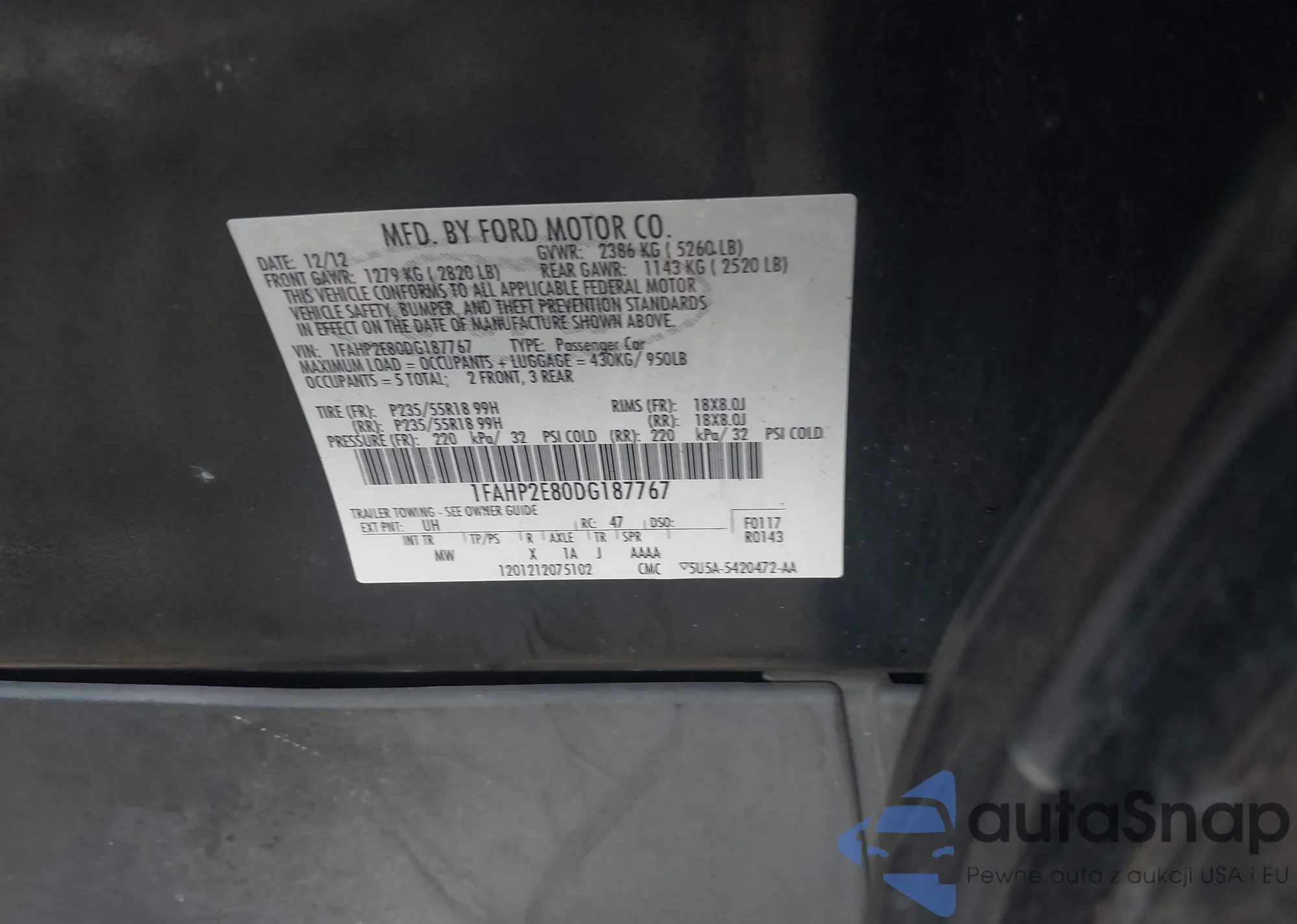 VIN: 1FAHP2E80DG187767