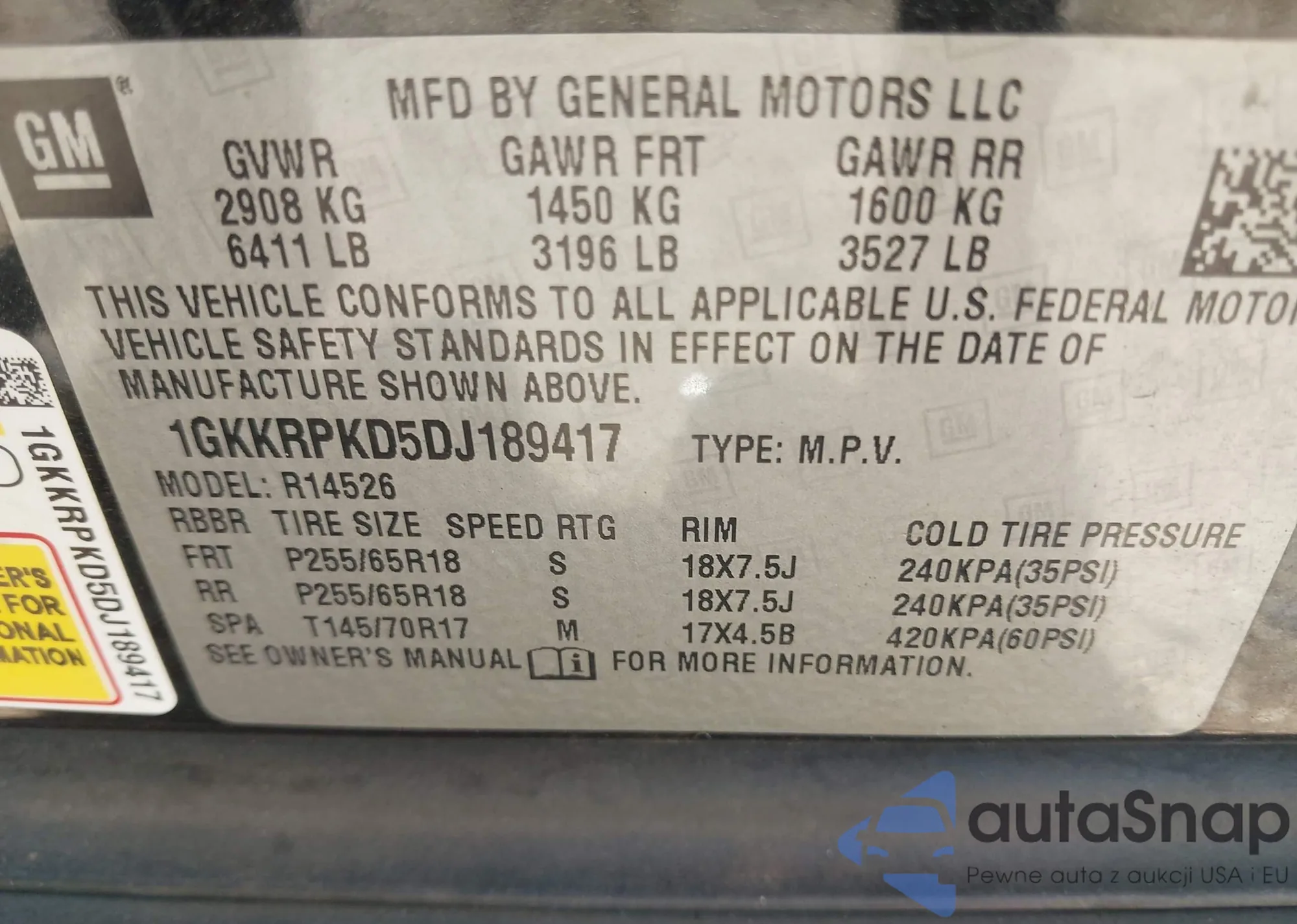 VIN: 1GKKRPKD5DJ189417