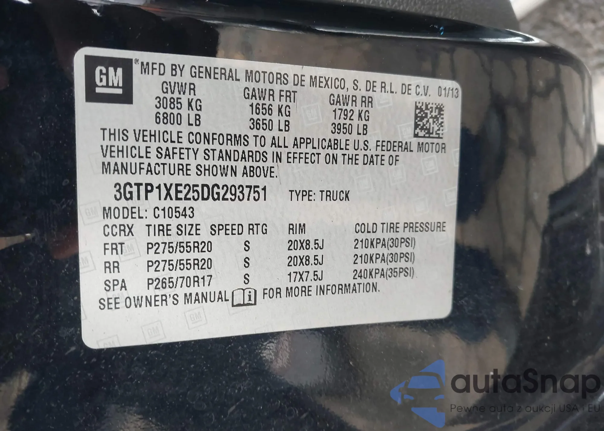 VIN: 3GTP1XE25DG293751