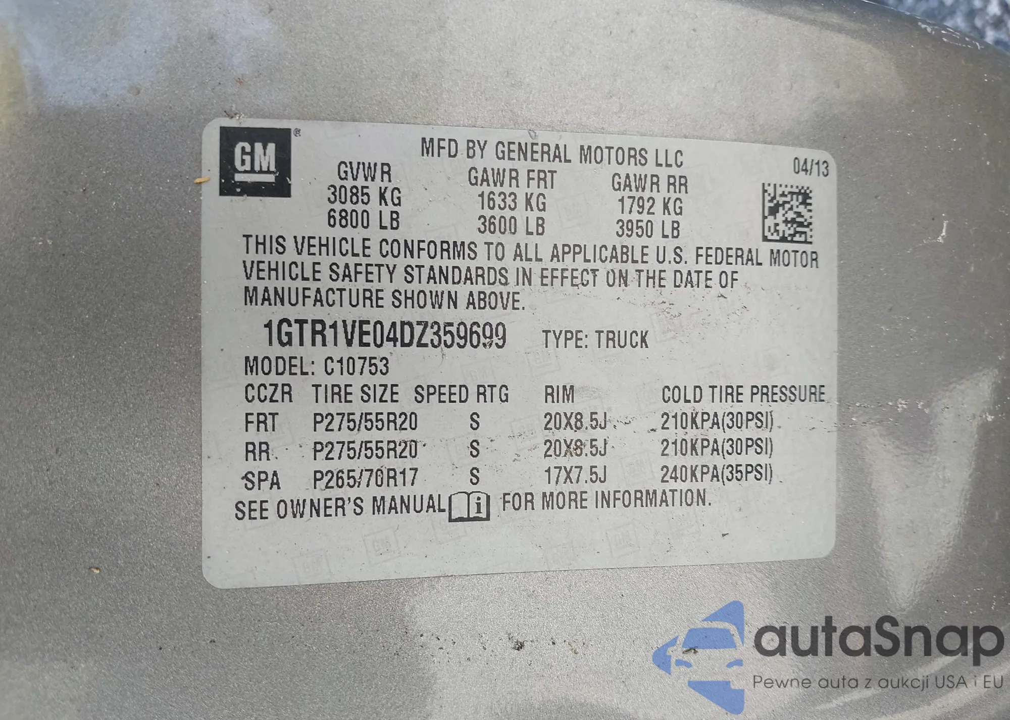 • VIN: 1GTR1VE04DZ359699