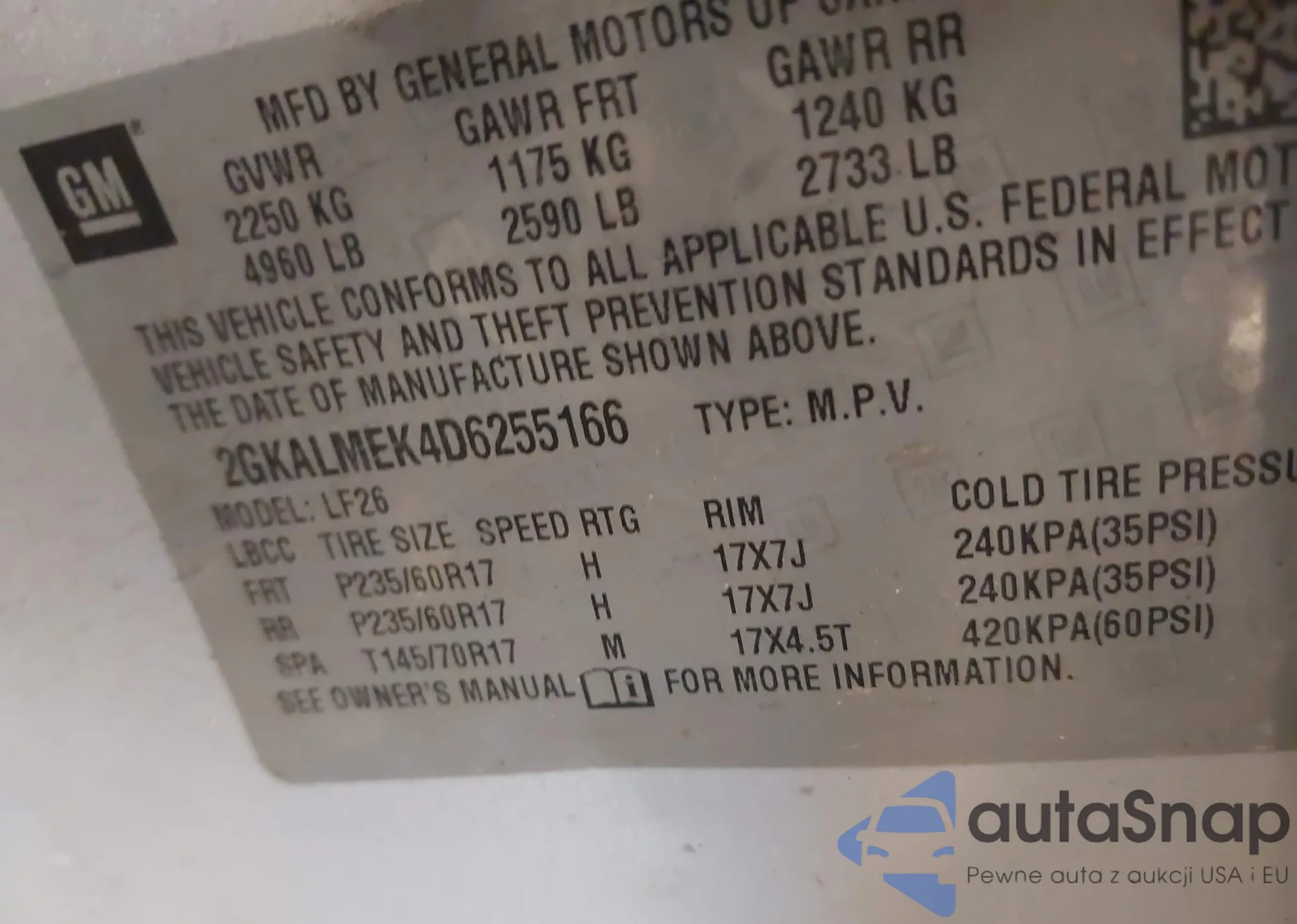 VIN: 2GKALMEK4D6255166