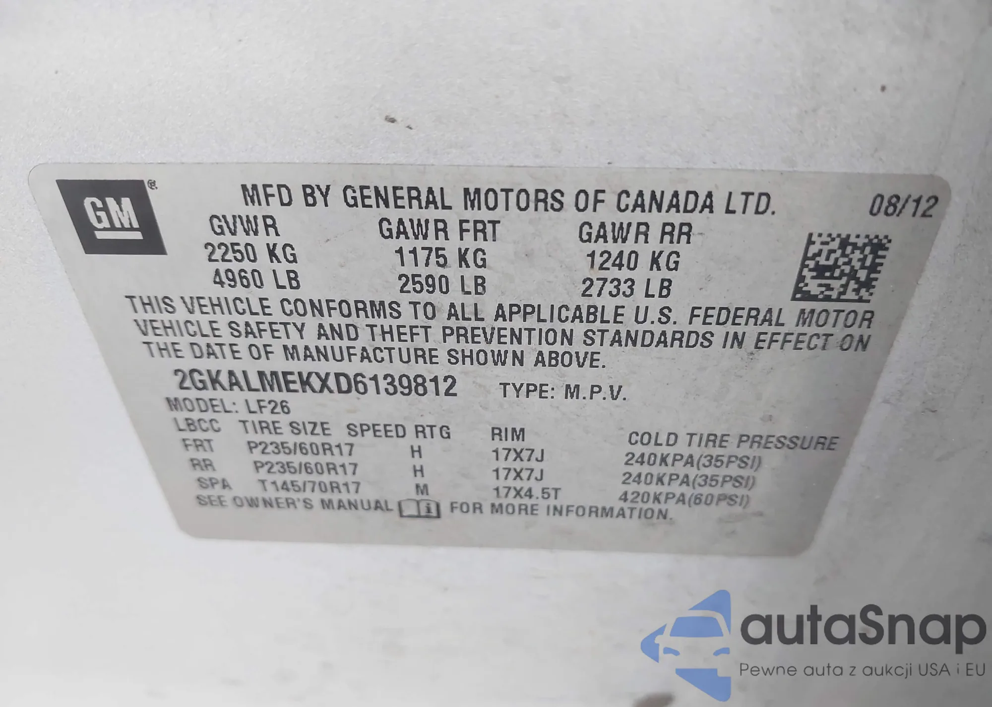 Автомобиль GMC Terrain 2013 (VIN 2GKALMEKXD6139812) ранее не участвовал в торгах. Документы чистые, пробег соответствует или ниже среднего по рынку. Продаётся страховой компанией — рекомендуем покупку. Доставка в порт займет около 6–8 недель.