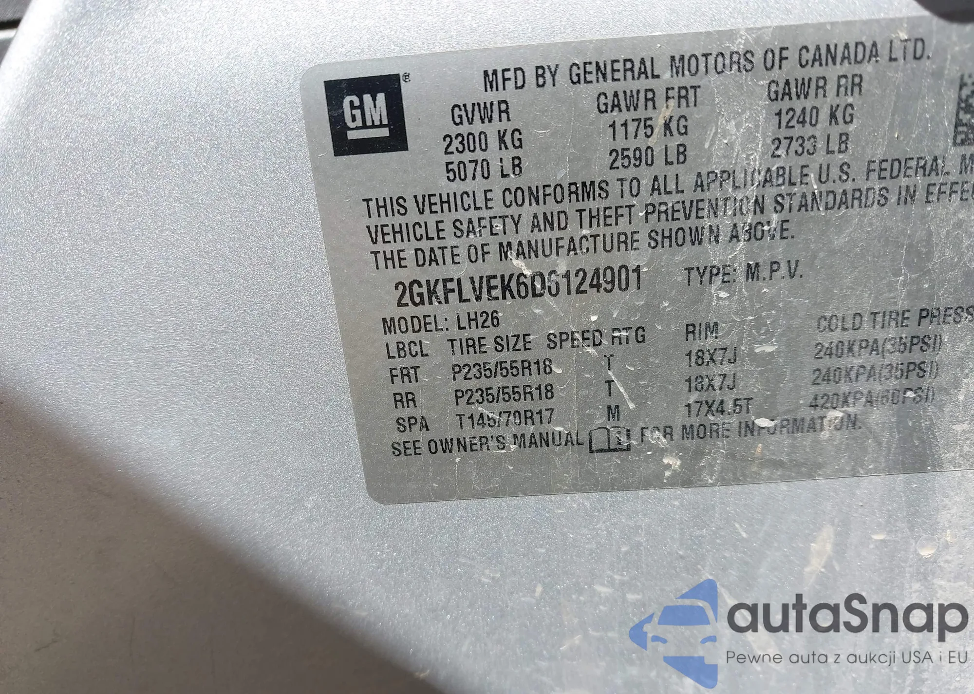 VIN: 2GKFLVEK6D6124901