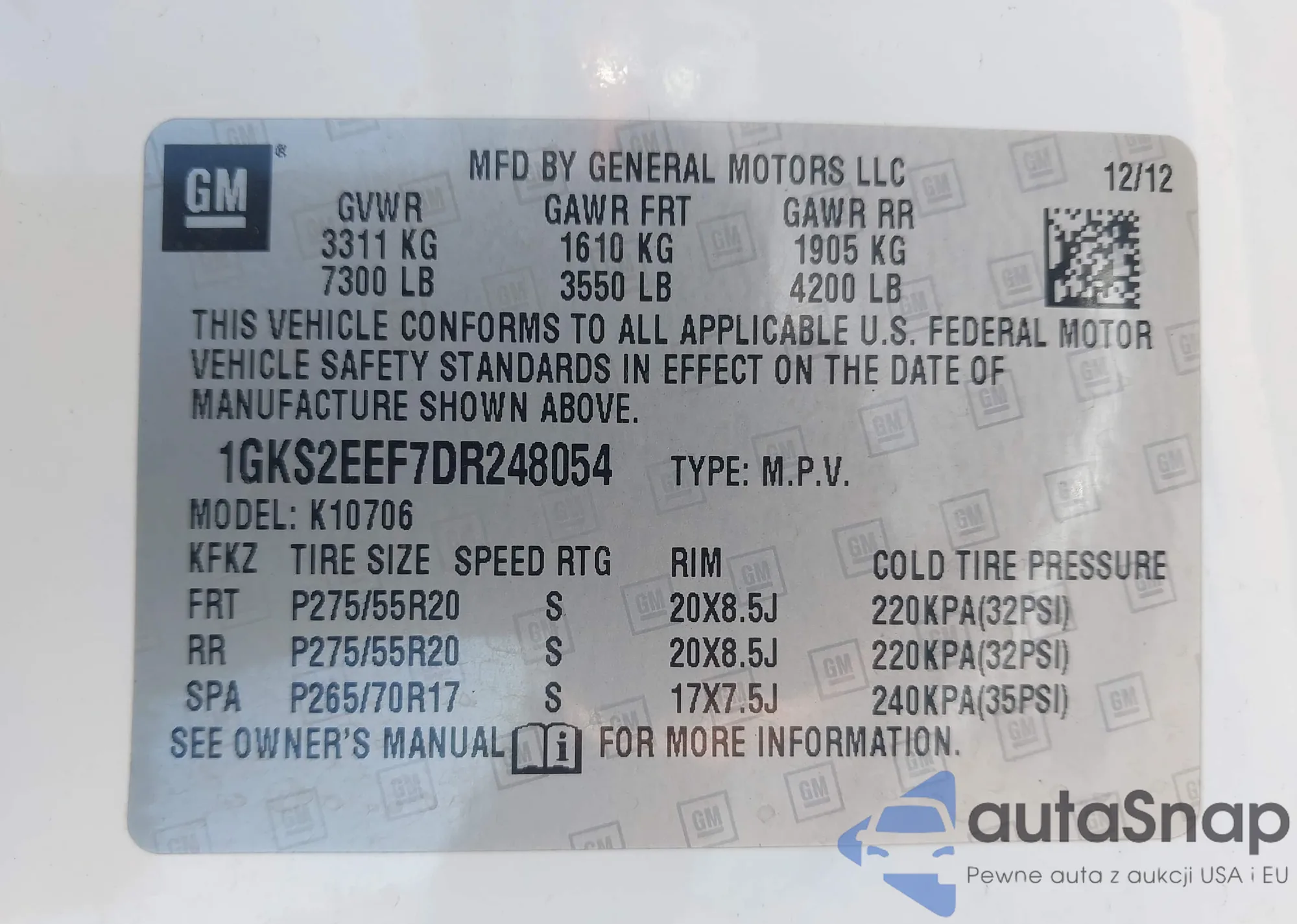 VIN: 1GKS2EEF7DR248054
