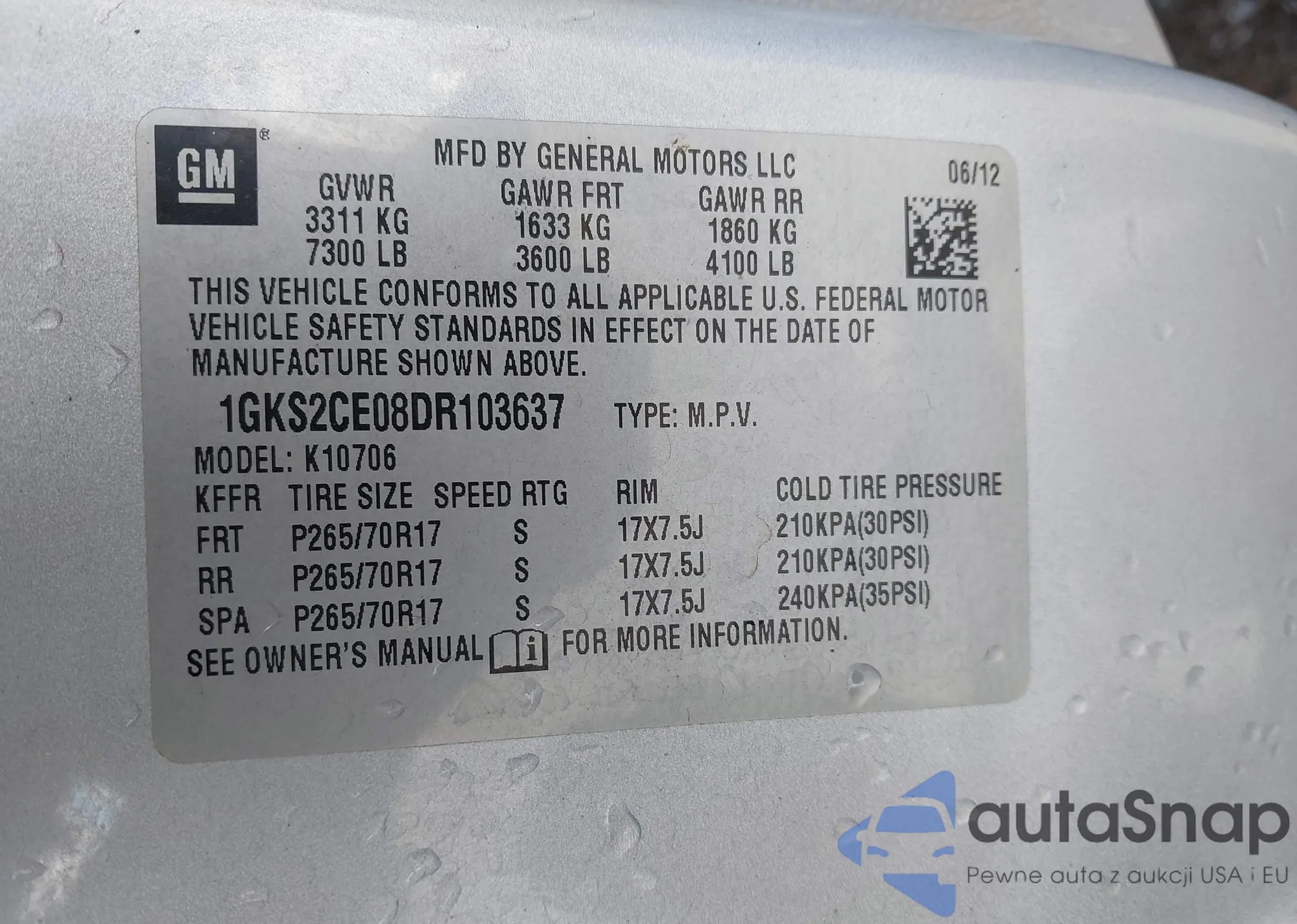 VIN: 1GKS2CE08DR103637