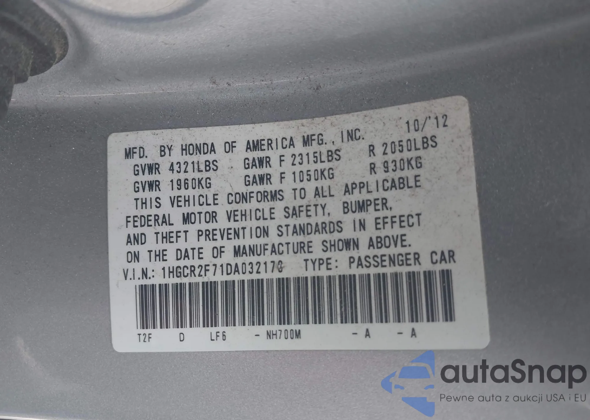 VIN: 1HGCR2F71DA032170