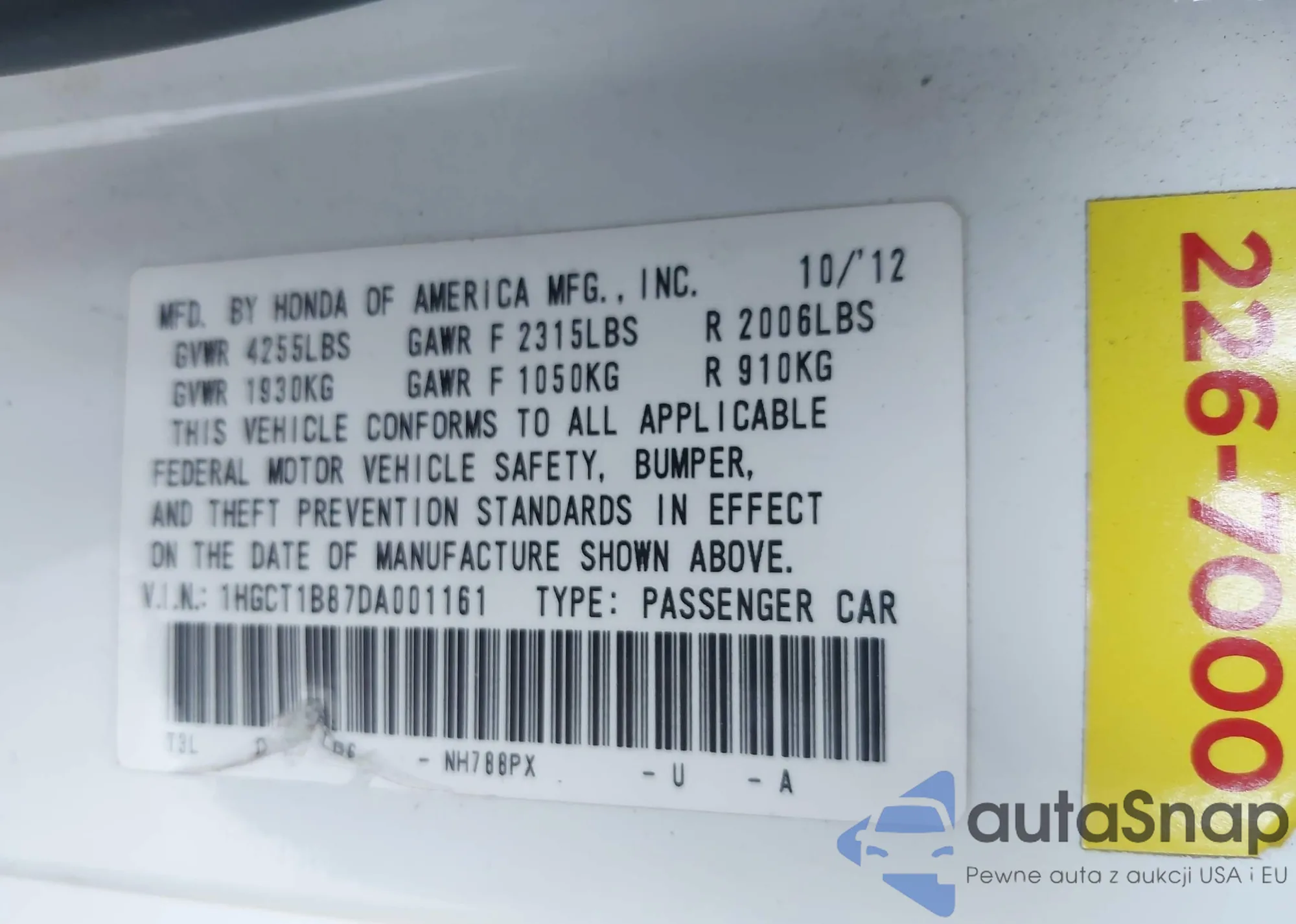 VIN: 1HGCT1B87DA001161