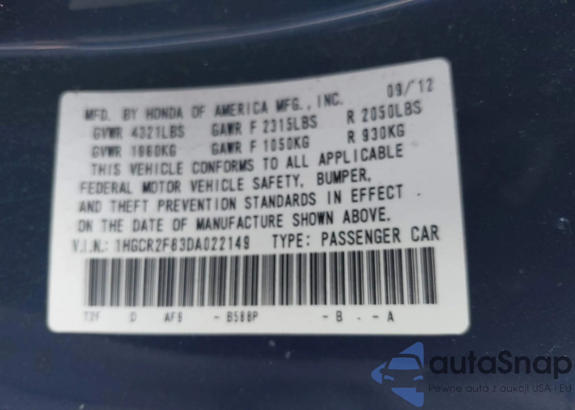 VIN: 1HGCR2F83DA022149