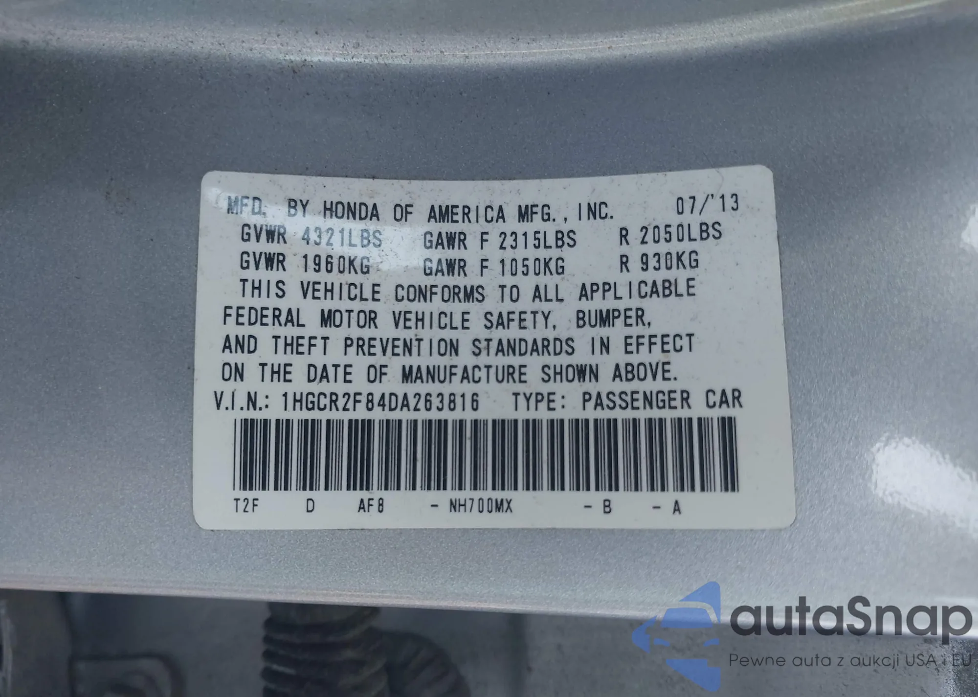 VIN: 1HGCR2F84DA263816