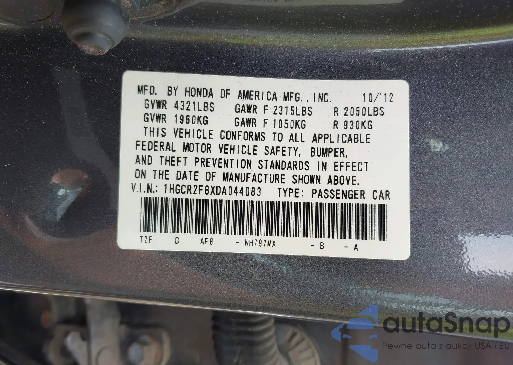 VIN: 1HGCR2F8XDA044083