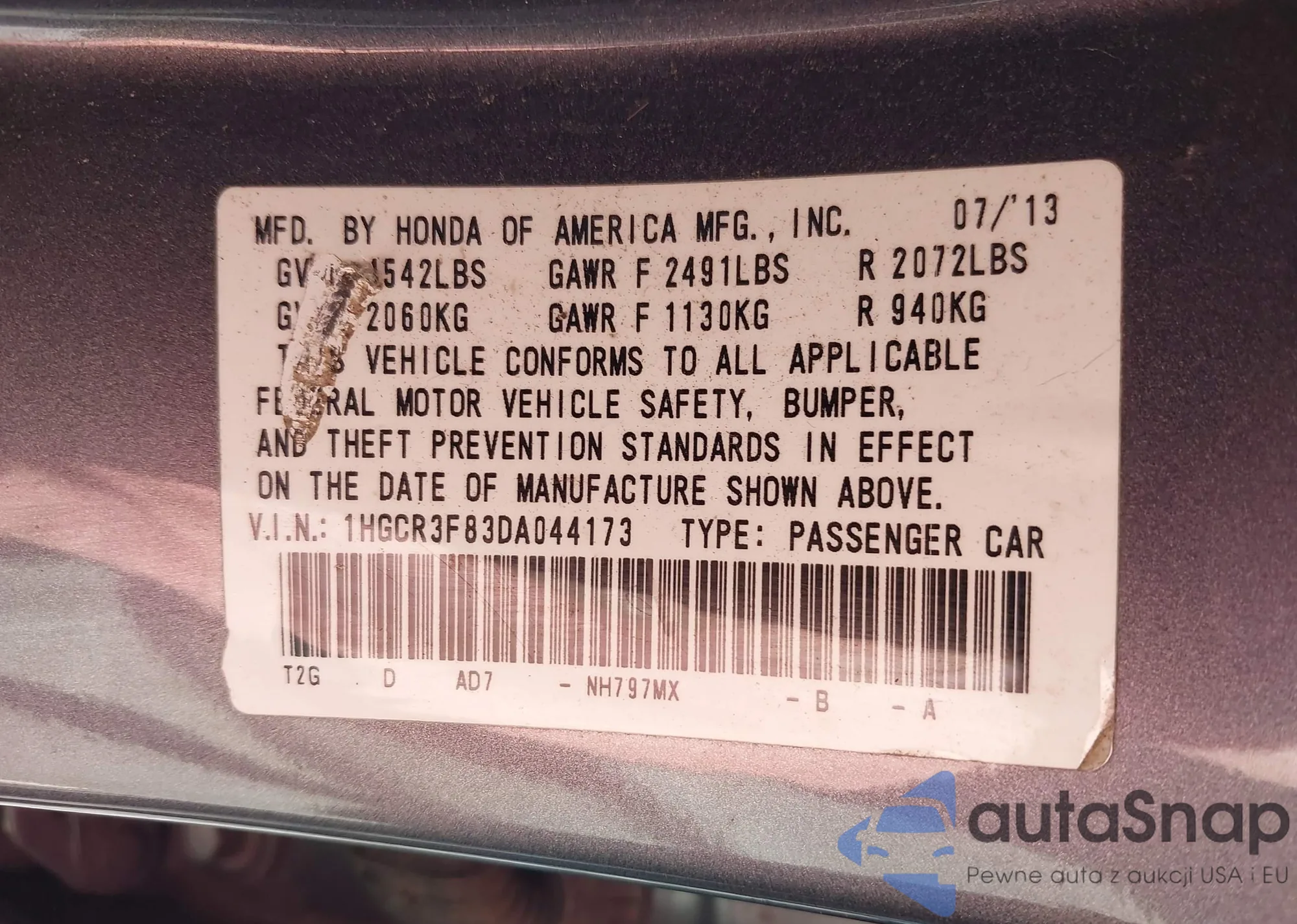 VIN: 1HGCR3F83DA044173