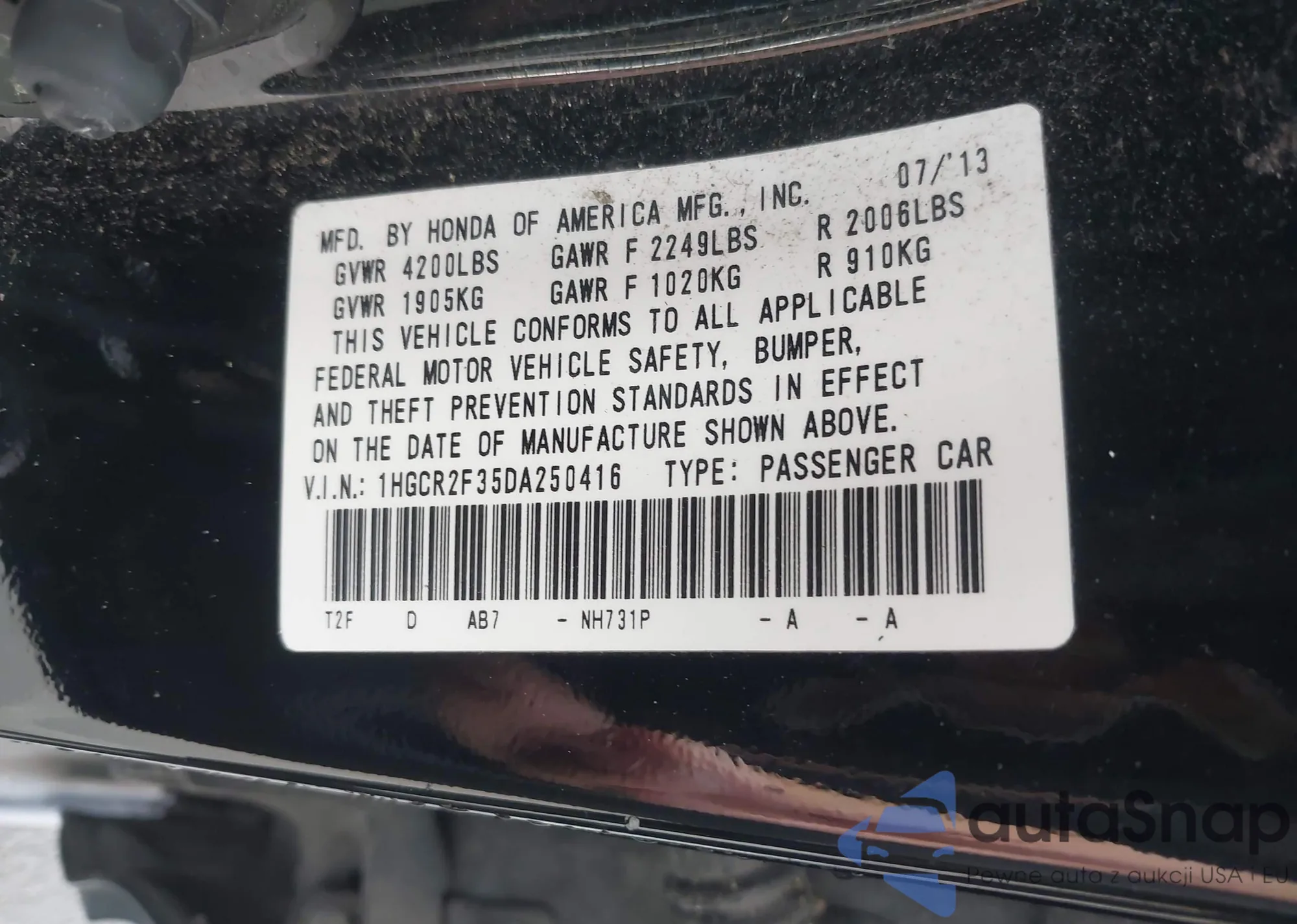 VIN: 1HGCR2F35DA250416
