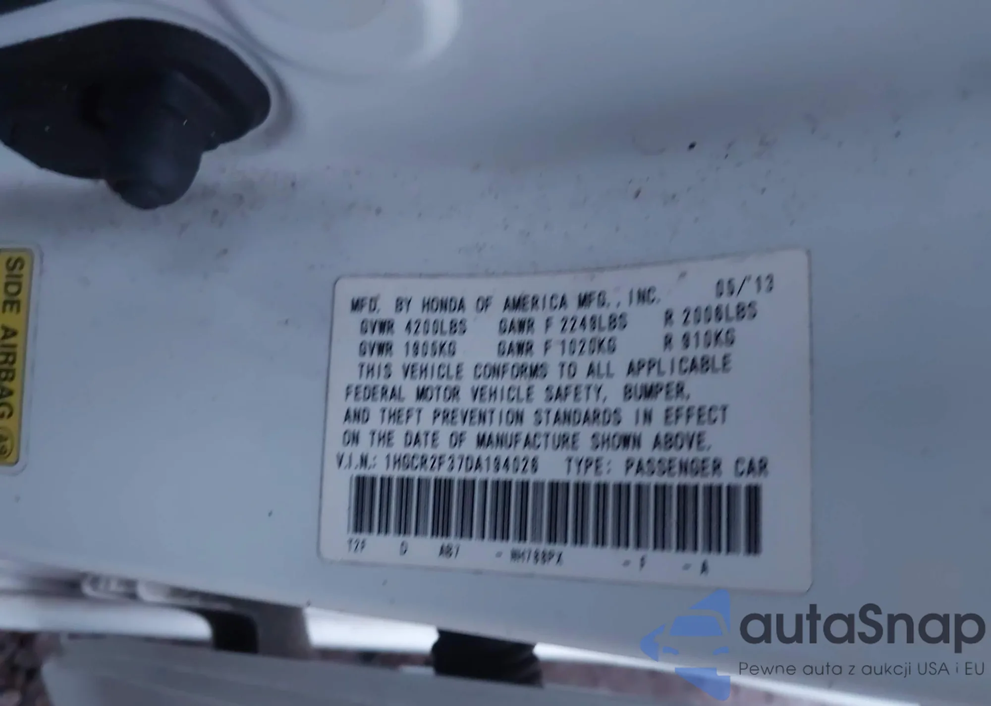 • VIN: 1HGCR2F37DA194026
