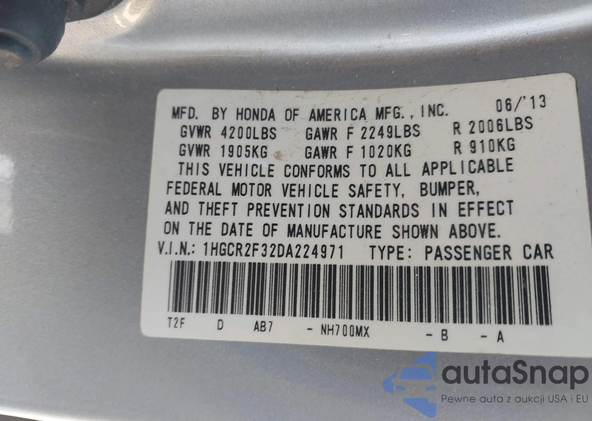 VIN: 1HGCR2F32DA224971