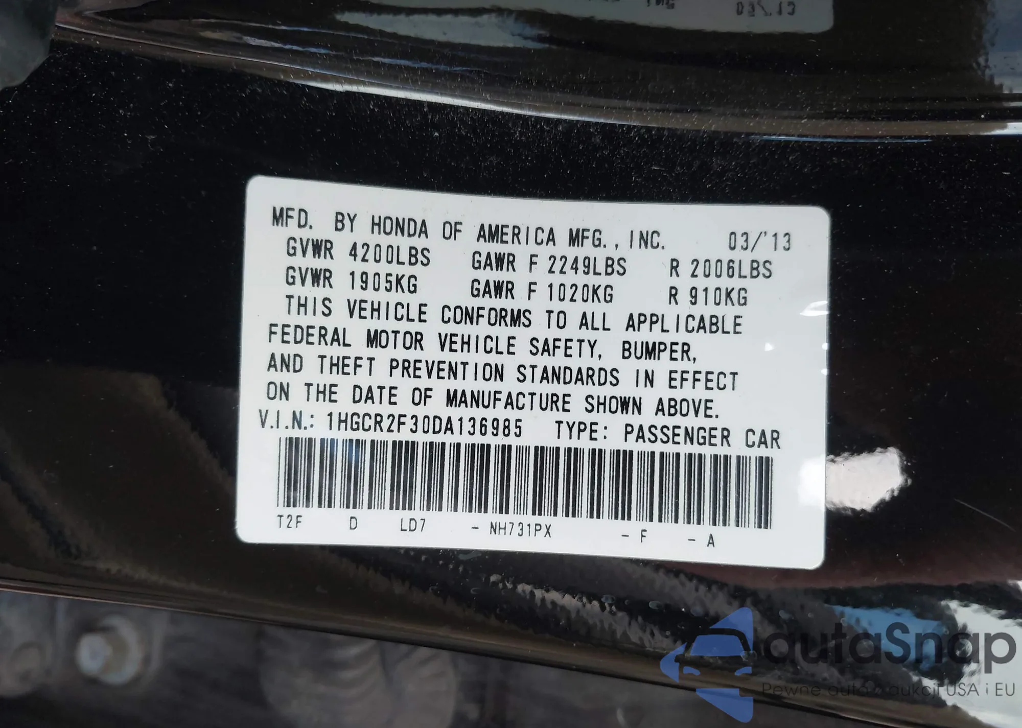 VIN: 1HGCR2F30DA136985
