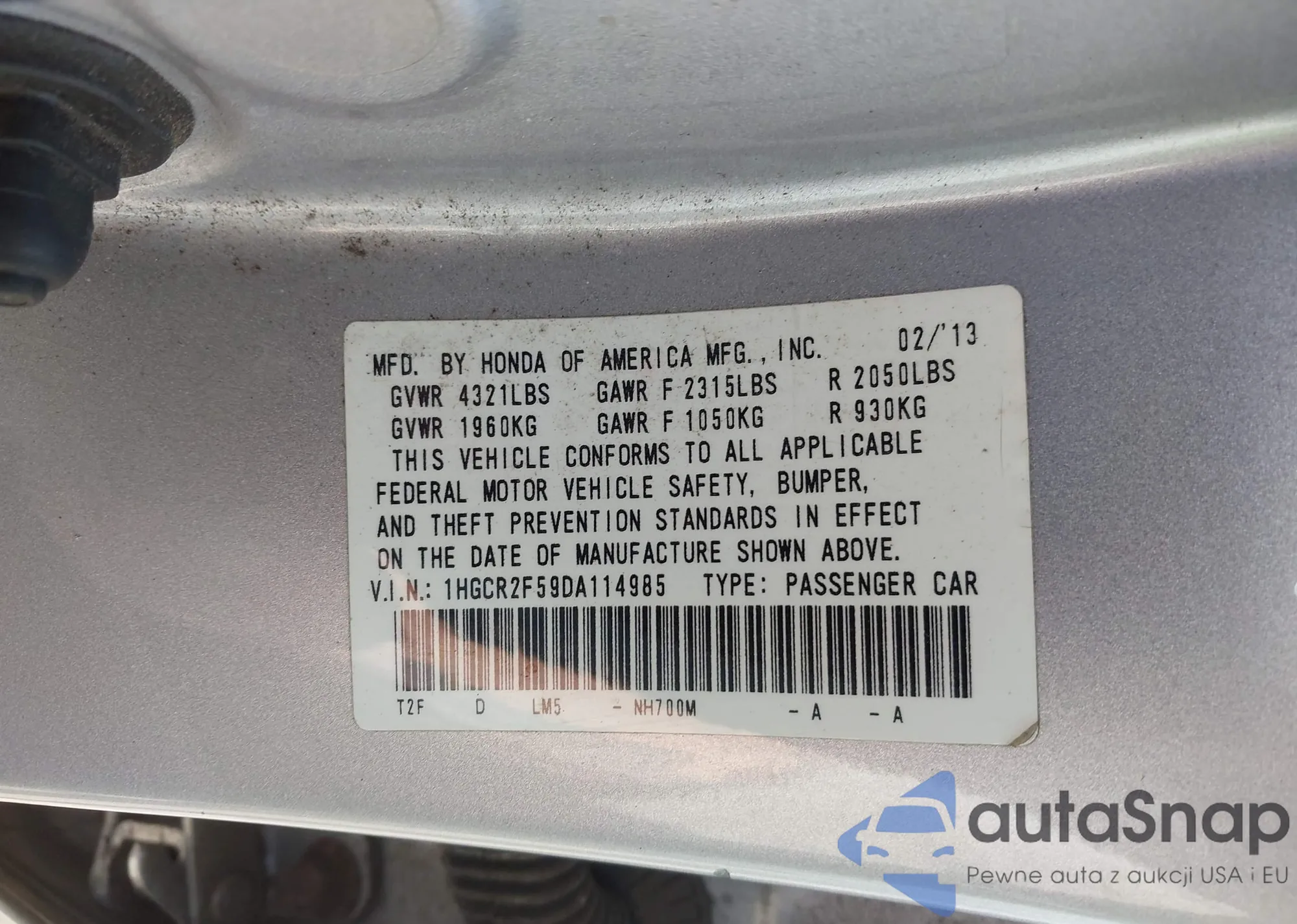 VIN: 1HGCR2F59DA114985