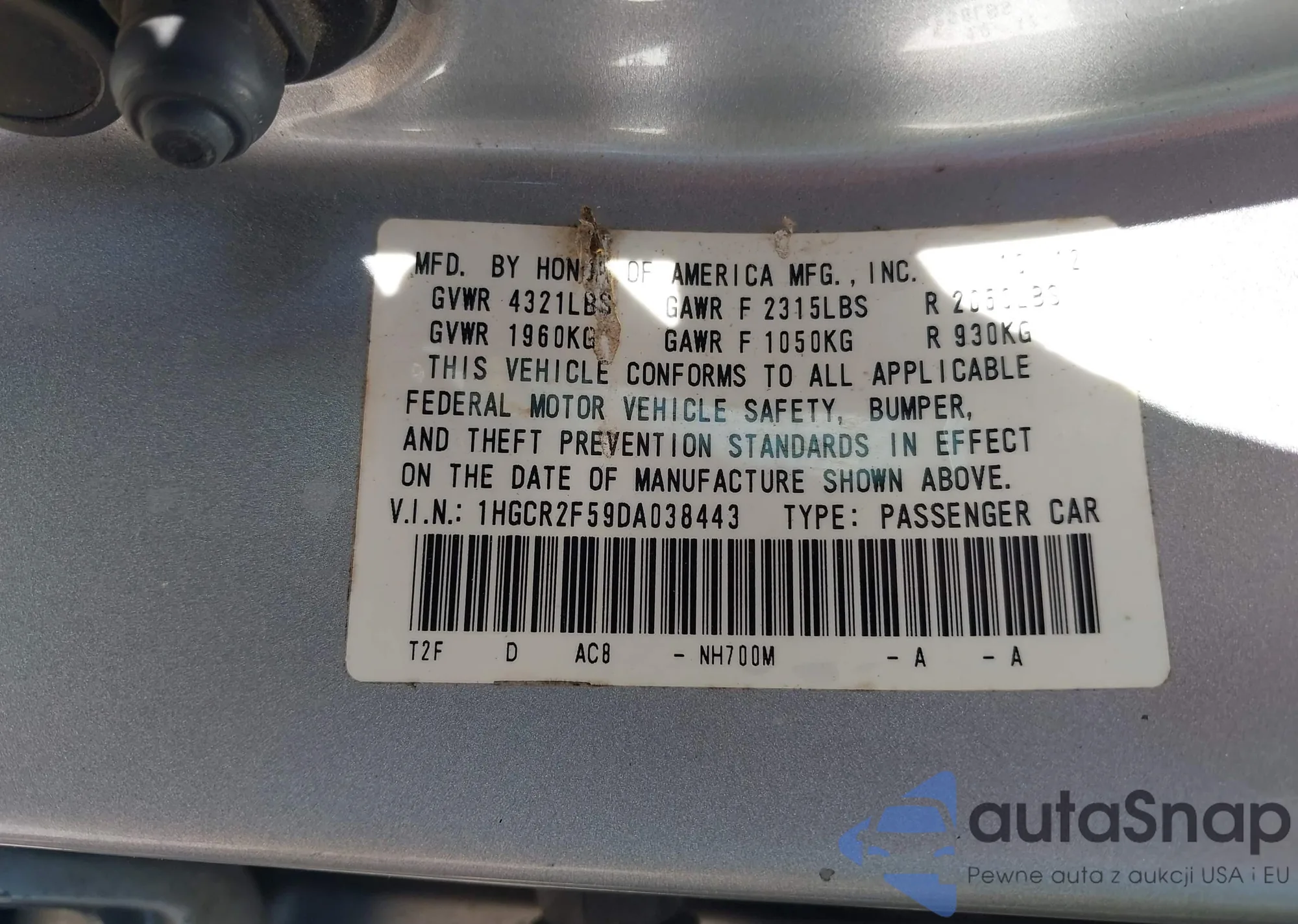 VIN: 1HGCR2F59DA038443