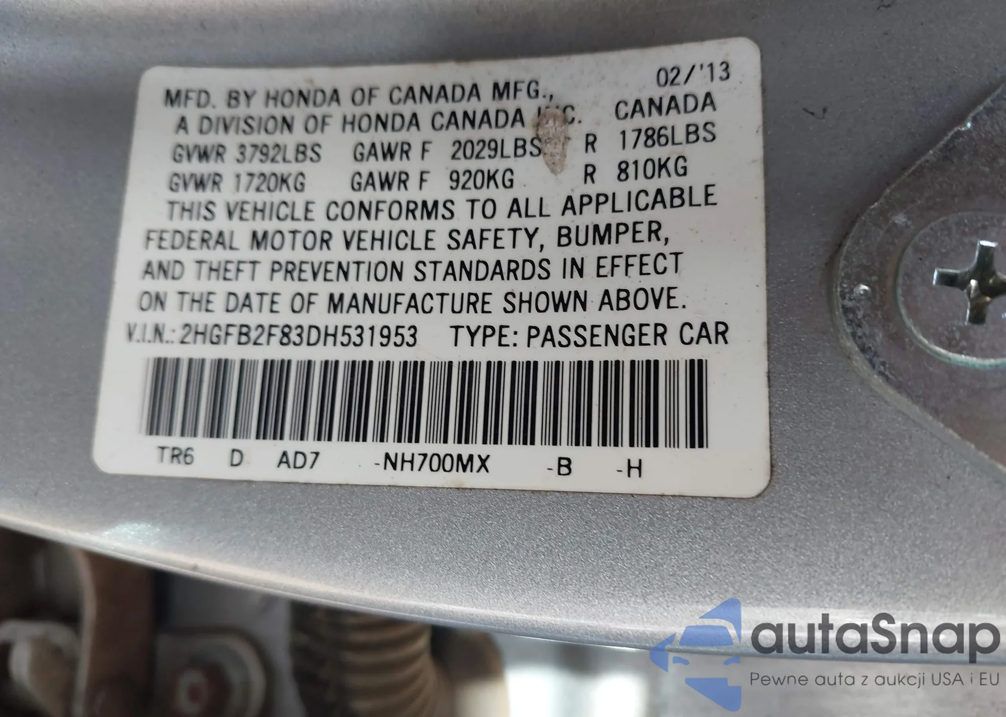 Автомобиль Honda Civic 2013 (VIN 2HGFB2F83DH531953) ранее не участвовал в торгах. Документы чистые, пробег соответствует или ниже среднего по рынку. Продаётся страховой компанией — рекомендуем покупку. Доставка в порт займет около 6–8 недель.
