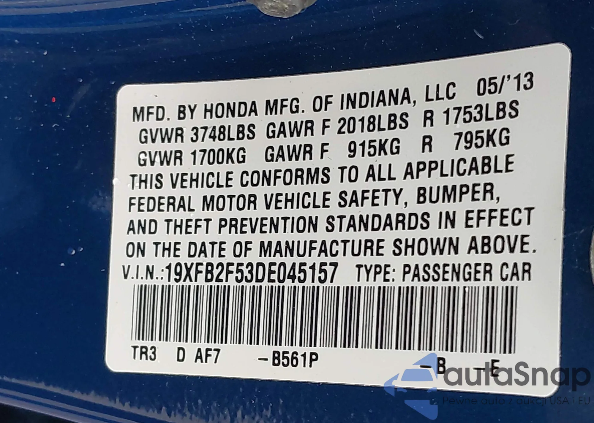 VIN: 19XFB2F53DE045157