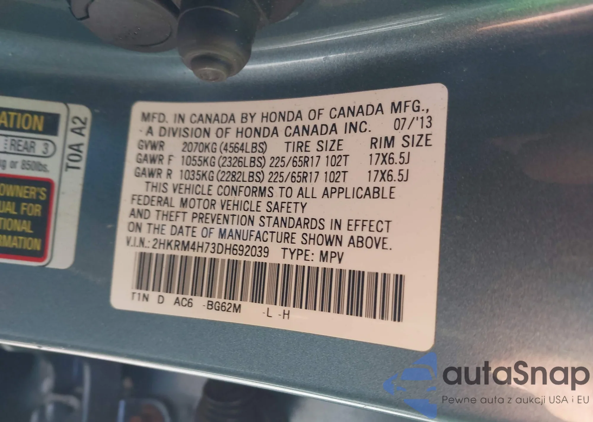 Автомобиль Honda CR-V 2013 (VIN 2HKRM4H73DH692039) ранее не участвовал в торгах. Документы чистые, пробег соответствует или ниже среднего по рынку. Продаётся страховой компанией — рекомендуем покупку. Доставка в порт займет около 6–8 недель.