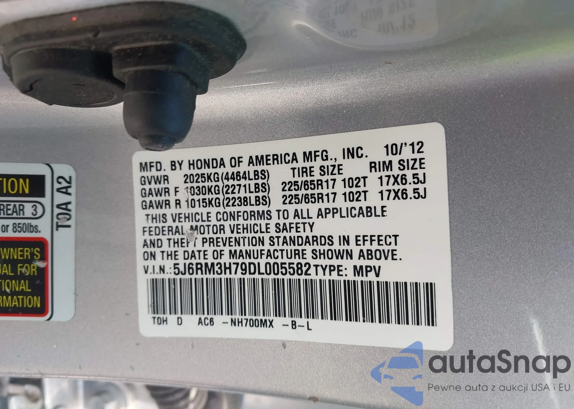 Автомобиль Honda CR-V 2013 (VIN 5J6RM3H79DL005582) ранее не участвовал в торгах. Документы чистые, пробег соответствует или ниже среднего по рынку. Продаётся страховой компанией — рекомендуем покупку. Доставка в порт займет около 6–8 недель.