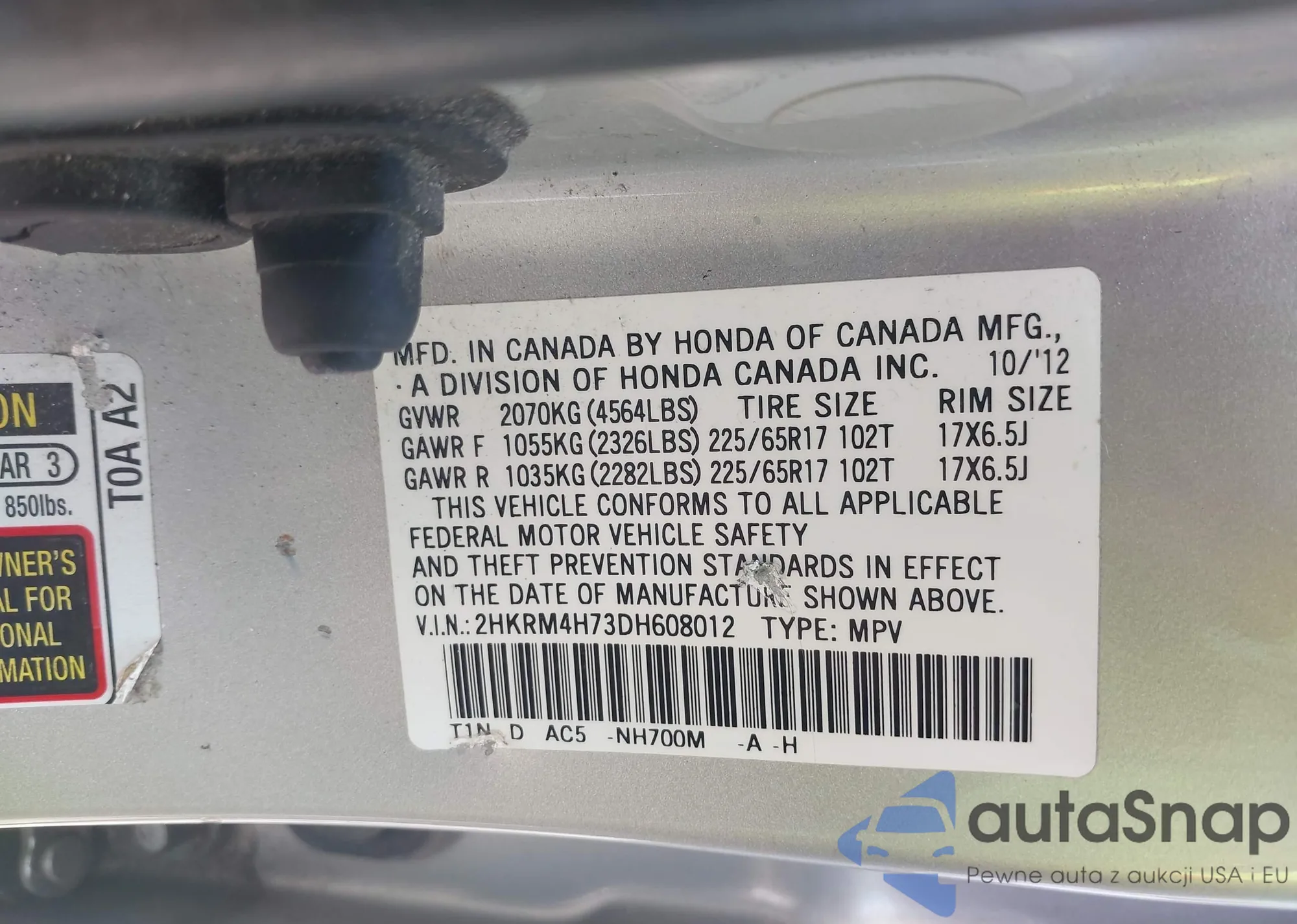 VIN: 2HKRM4H73DH608012