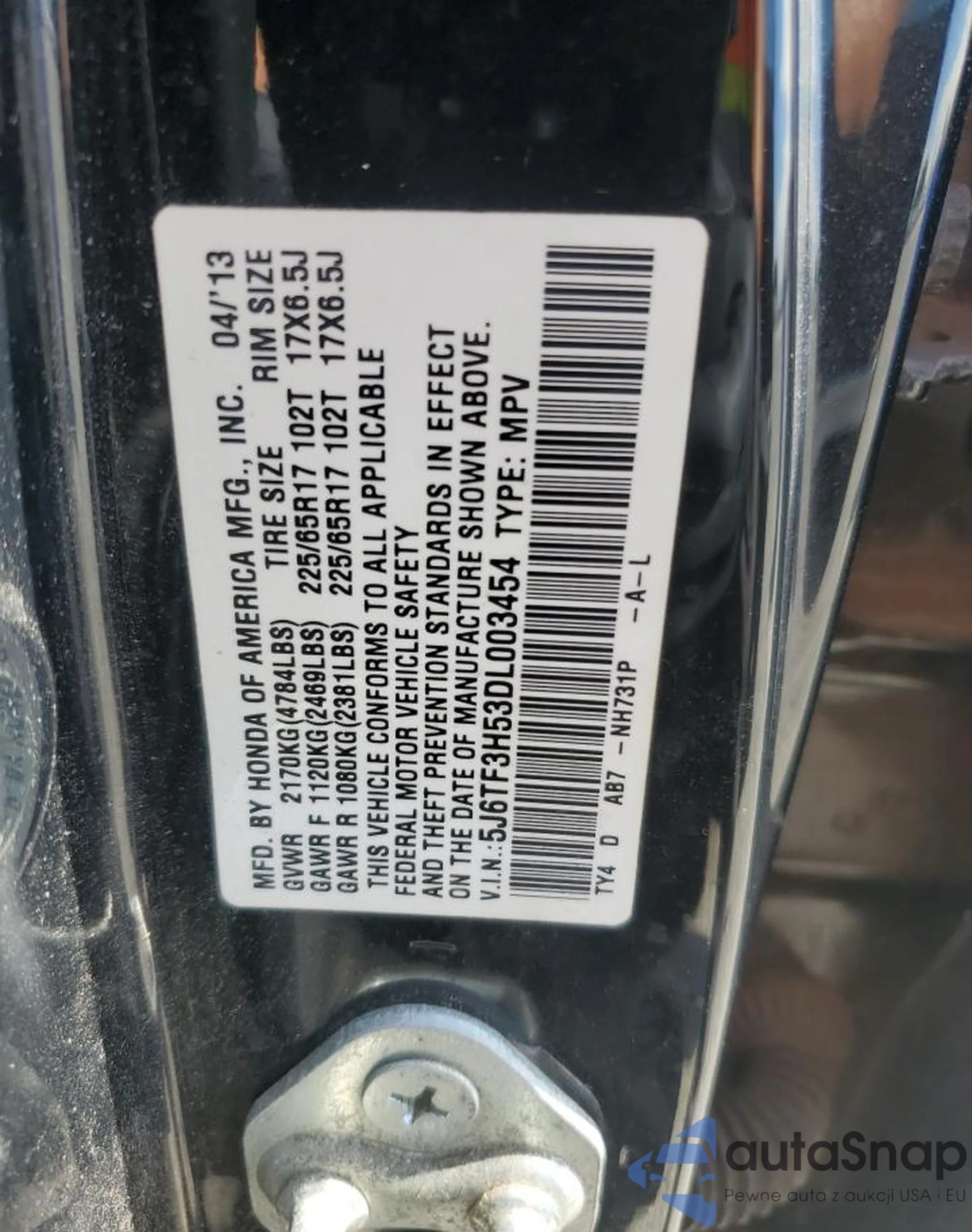 VIN: 5J6TF3H53DL003454