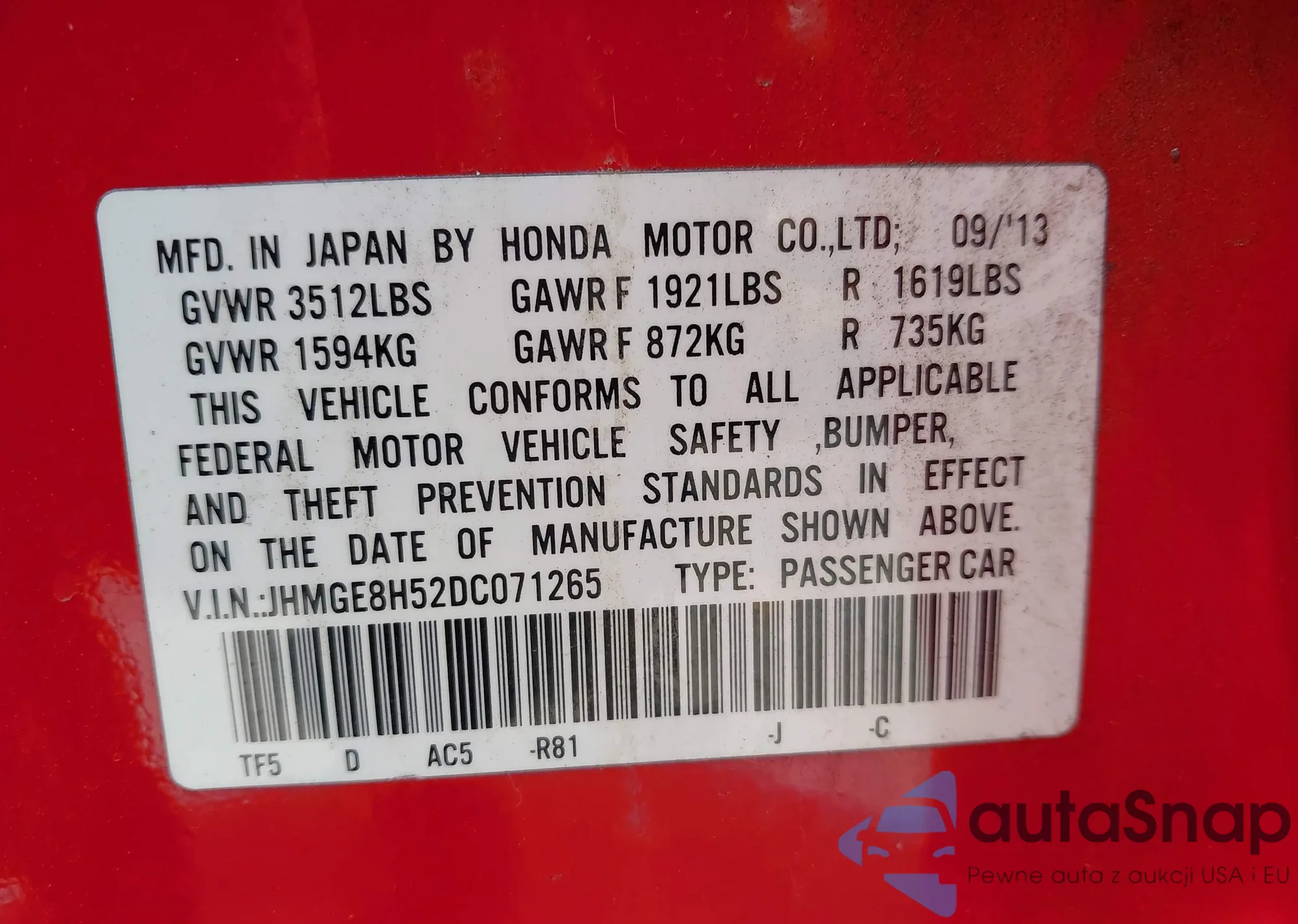 VIN: JHMGE8H52DC071265