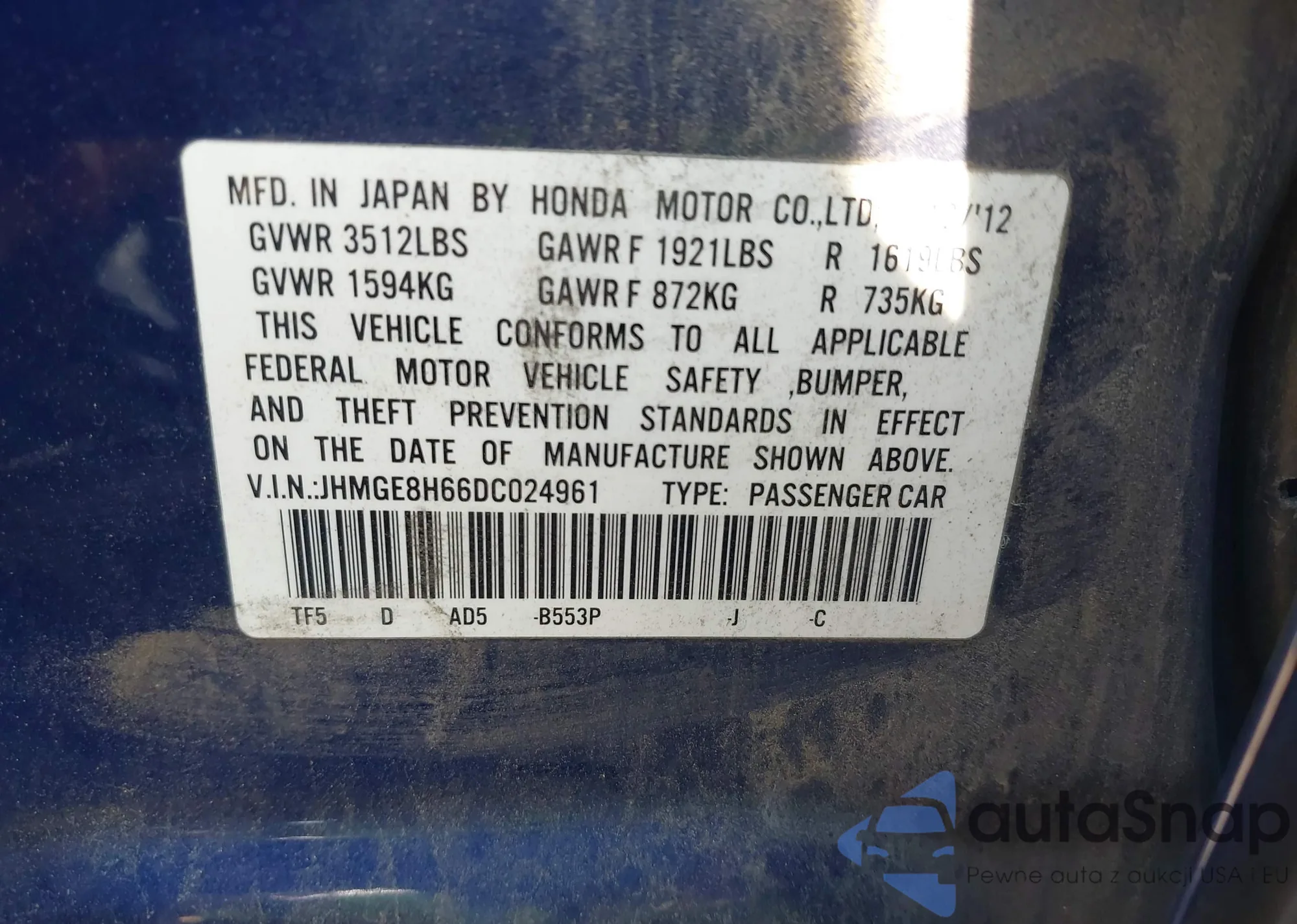 • VIN: JHMGE8H66DC024961