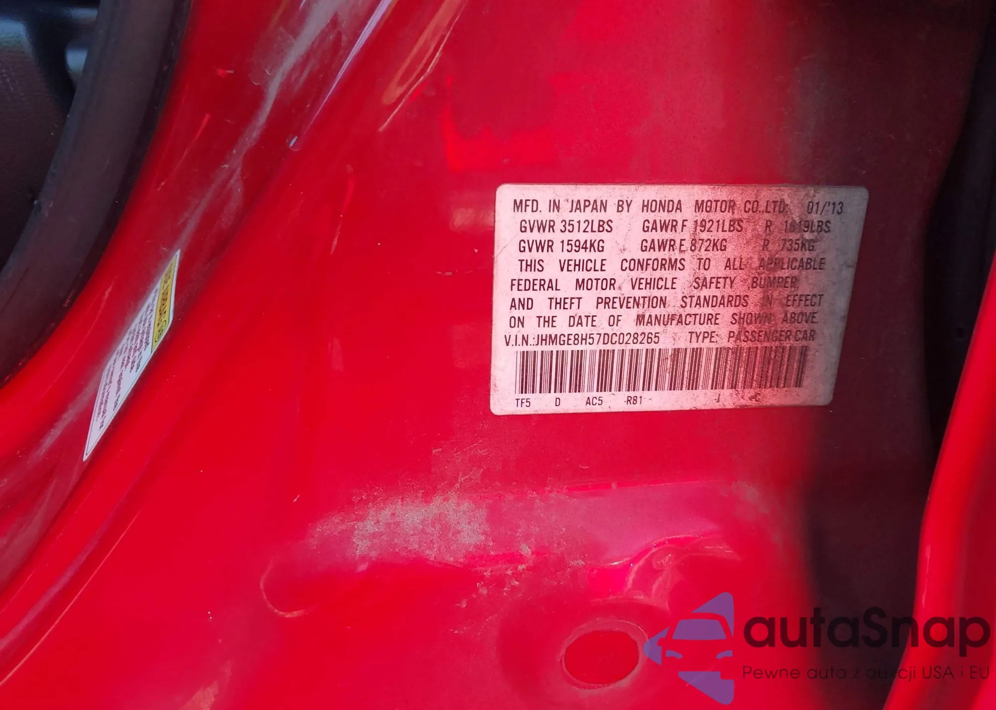 VIN: JHMGE8H57DC028265