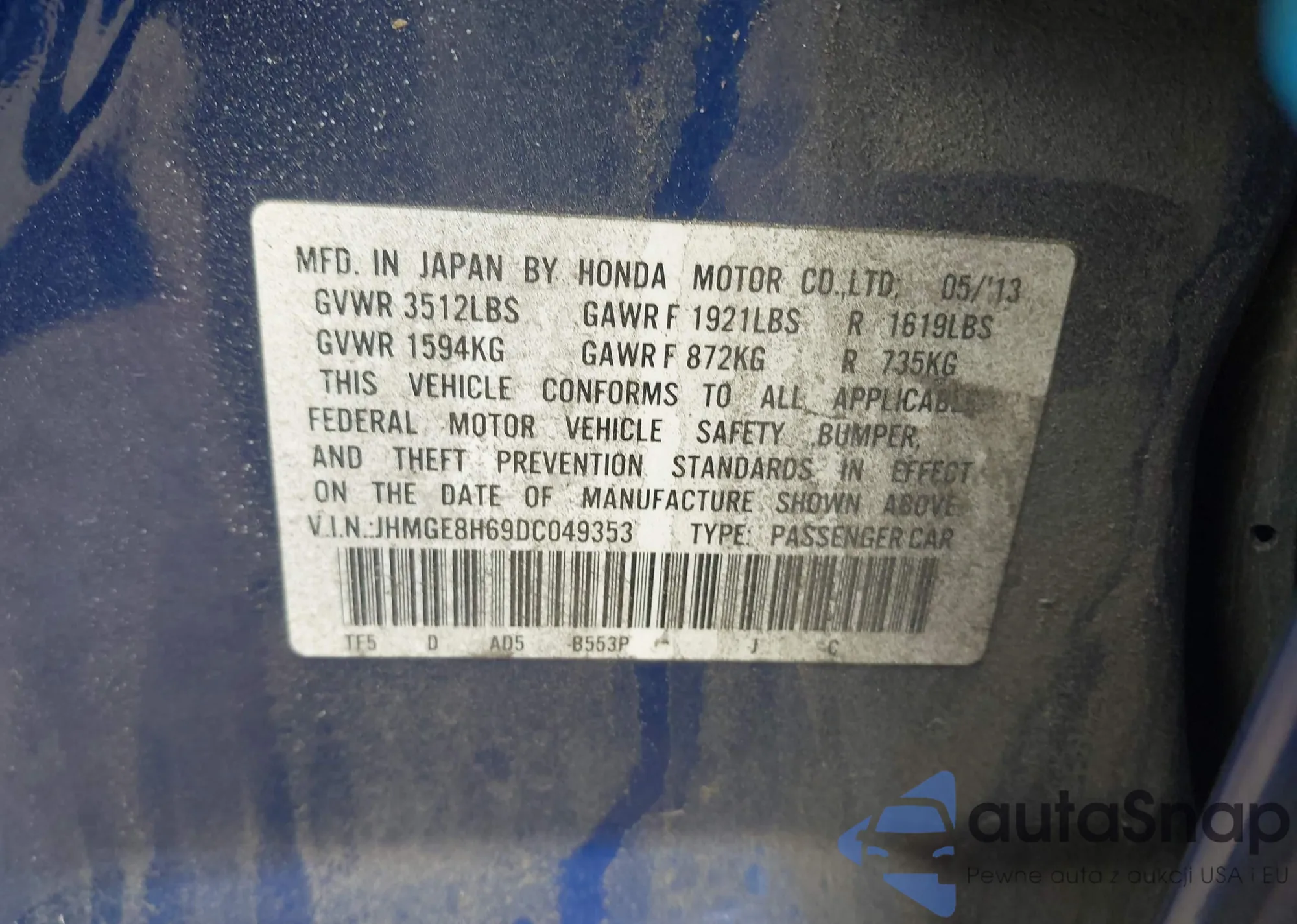 VIN: JHMGE8H69DC049353