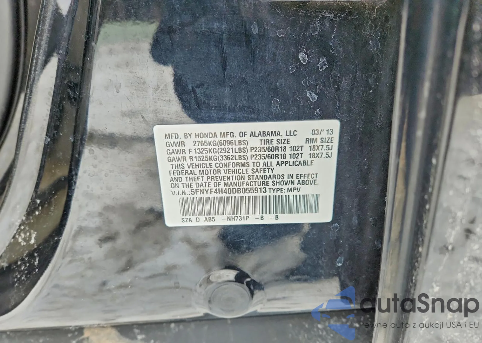 VIN: 5FNYF4H40DB055913