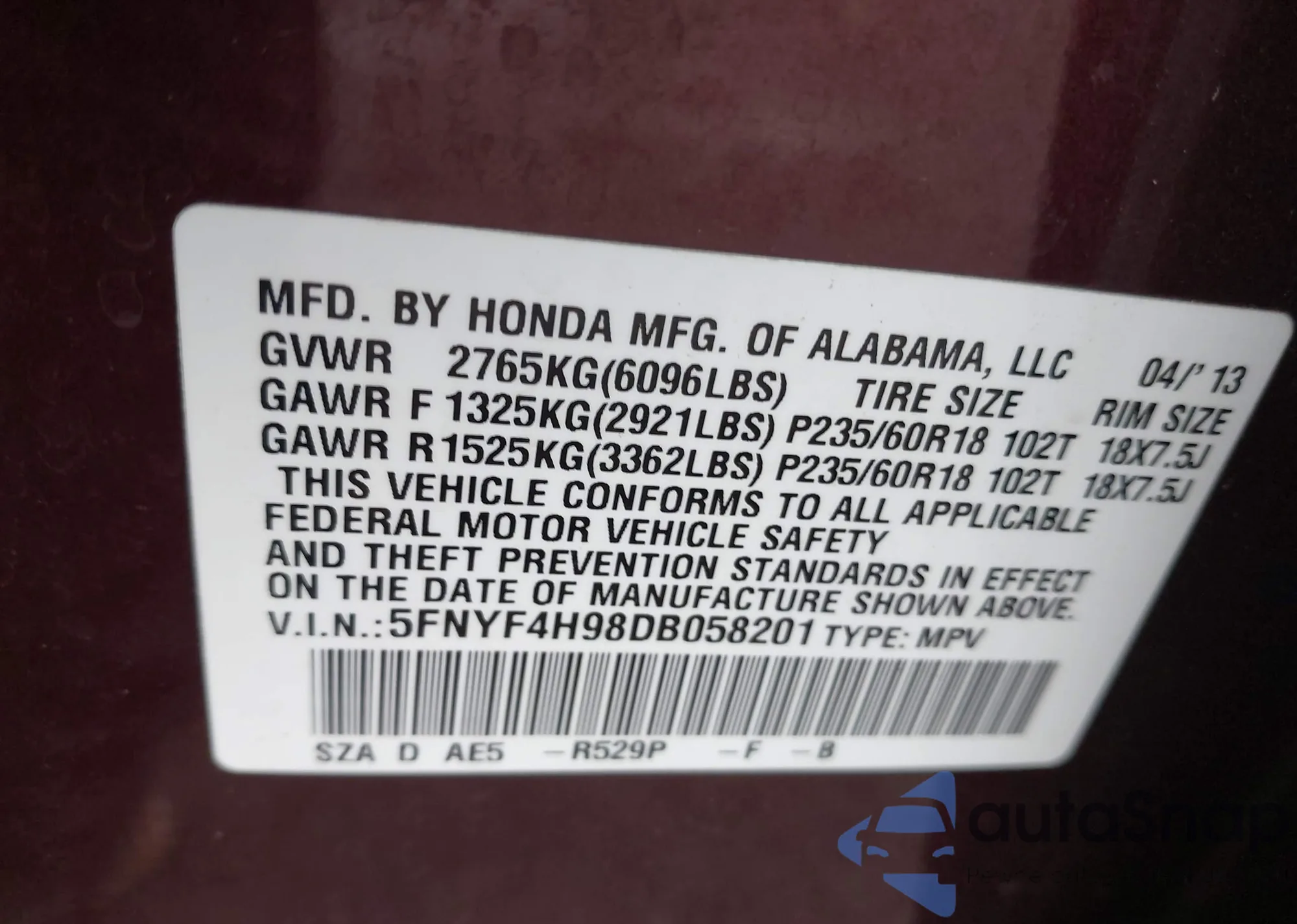 Автомобиль Honda Pilot 2013 (VIN 5FNYF4H98DB058201) ранее не участвовал в торгах. Документы чистые, пробег соответствует или ниже среднего по рынку. Продаётся страховой компанией — рекомендуем покупку. Доставка в порт займет около 6–8 недель.
