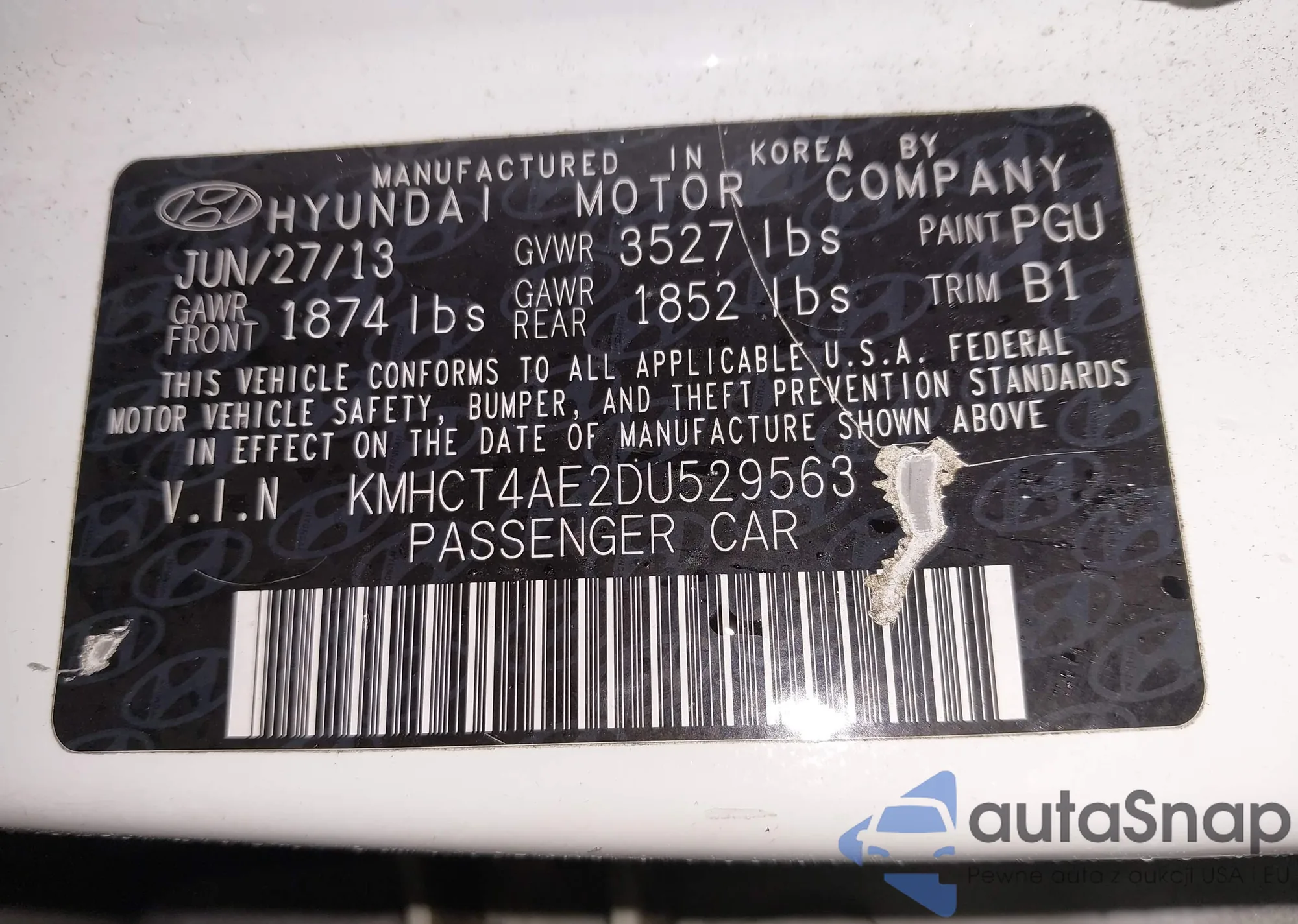 VIN: KMHCT4AE2DU529563