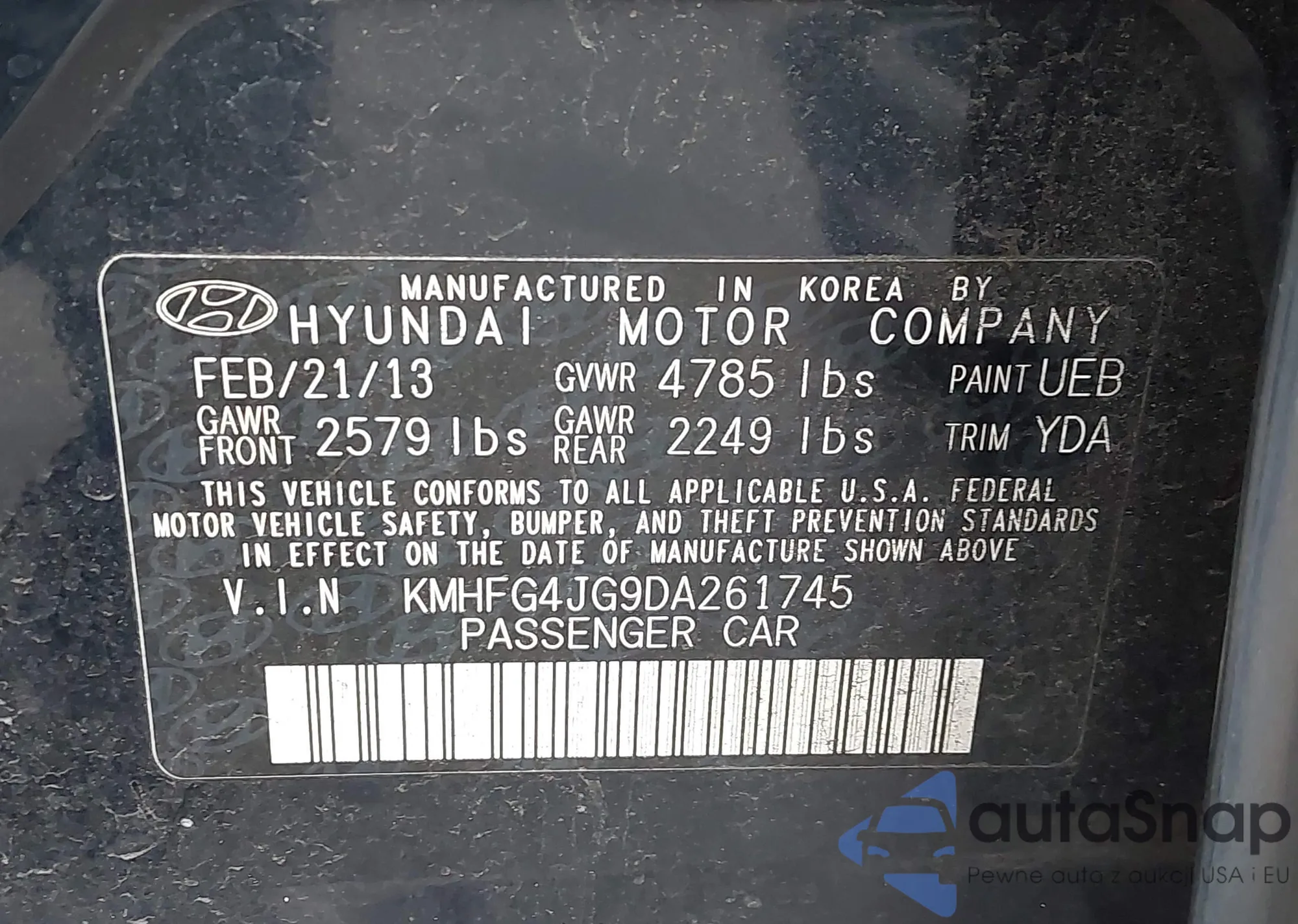 • VIN: KMHFG4JG9DA261745