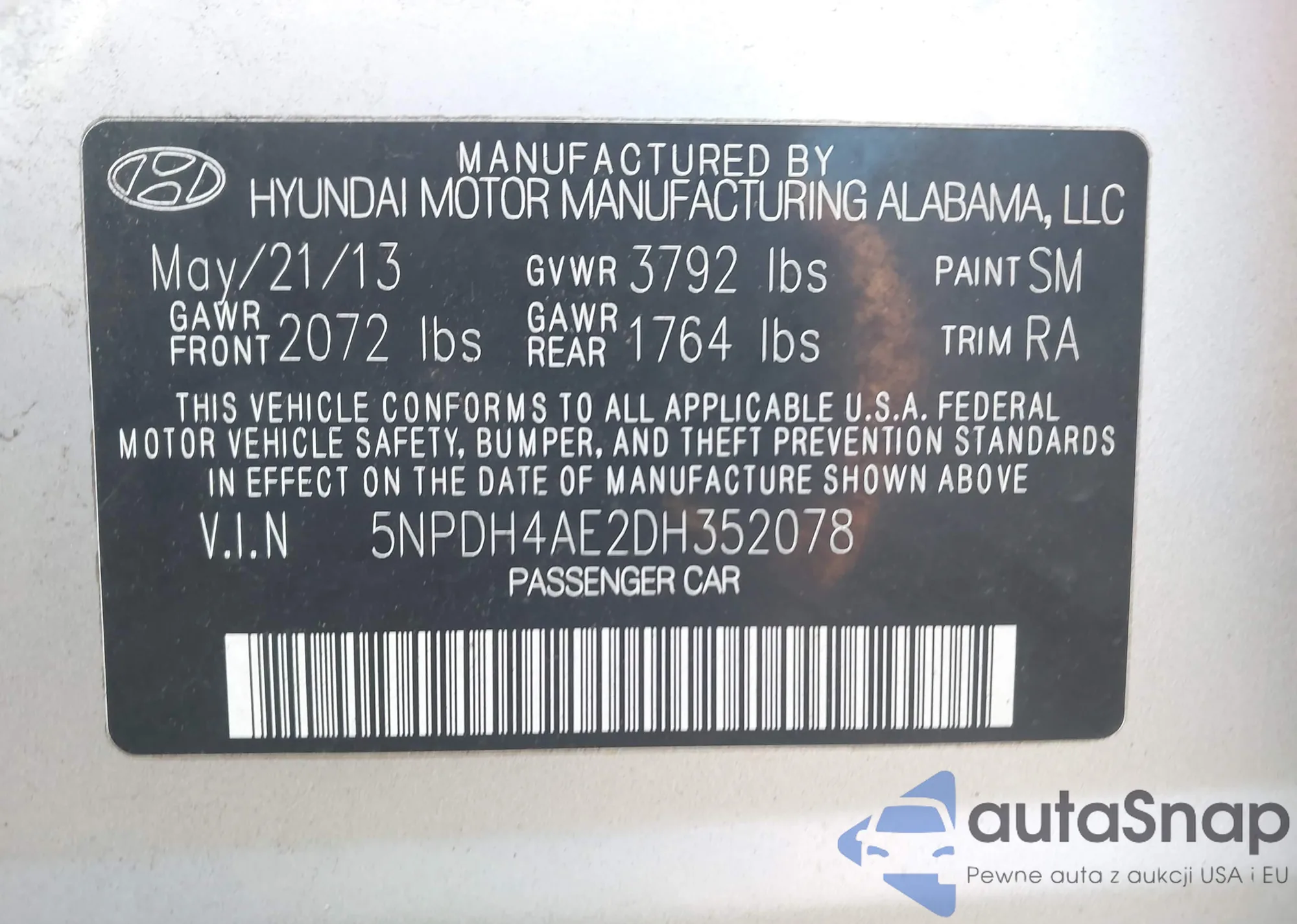 VIN: 5NPDH4AE2DH352078