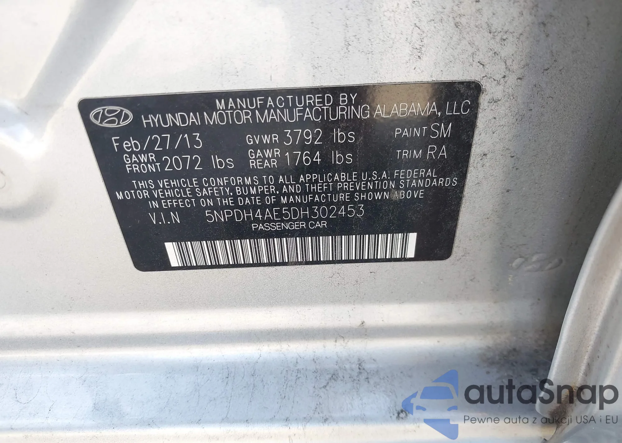 VIN: 5NPDH4AE5DH302453