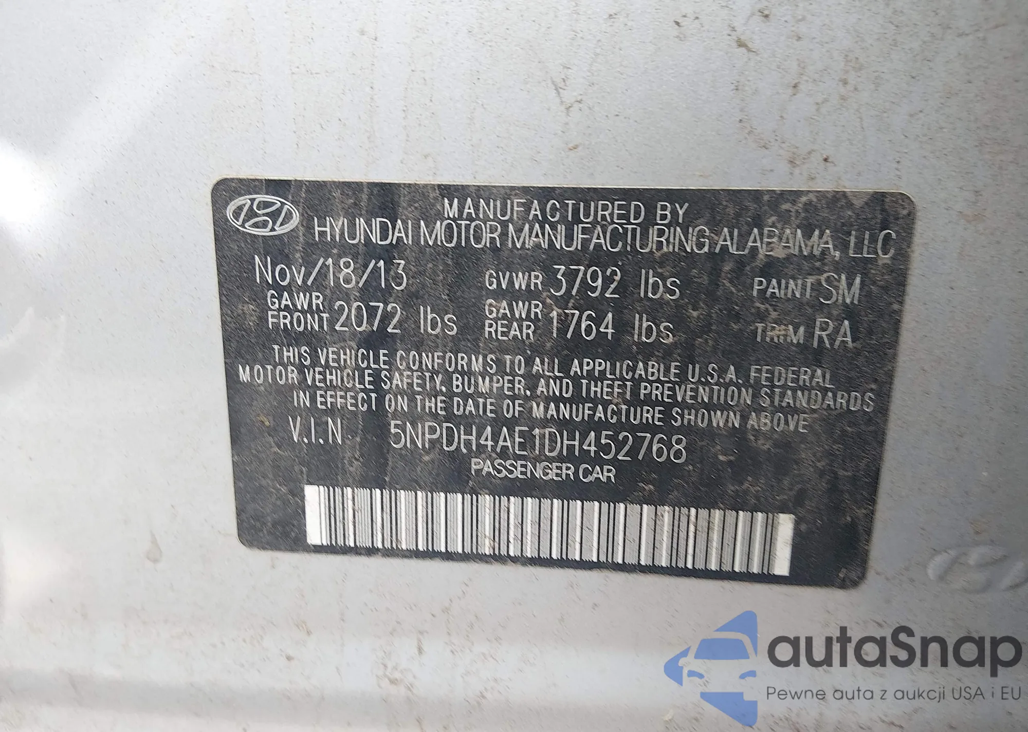 VIN: 5NPDH4AE1DH452768