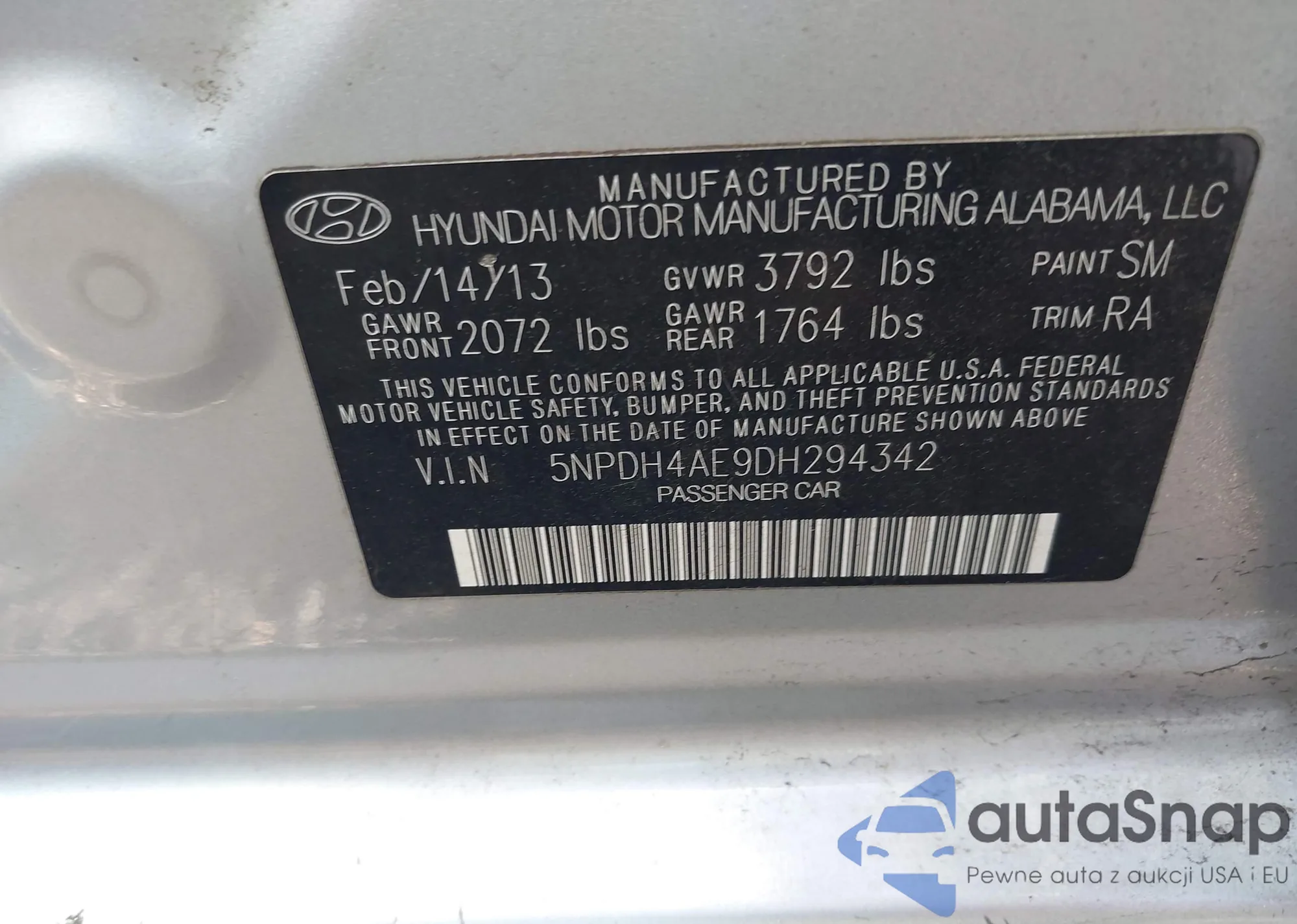 VIN: 5NPDH4AE9DH294342