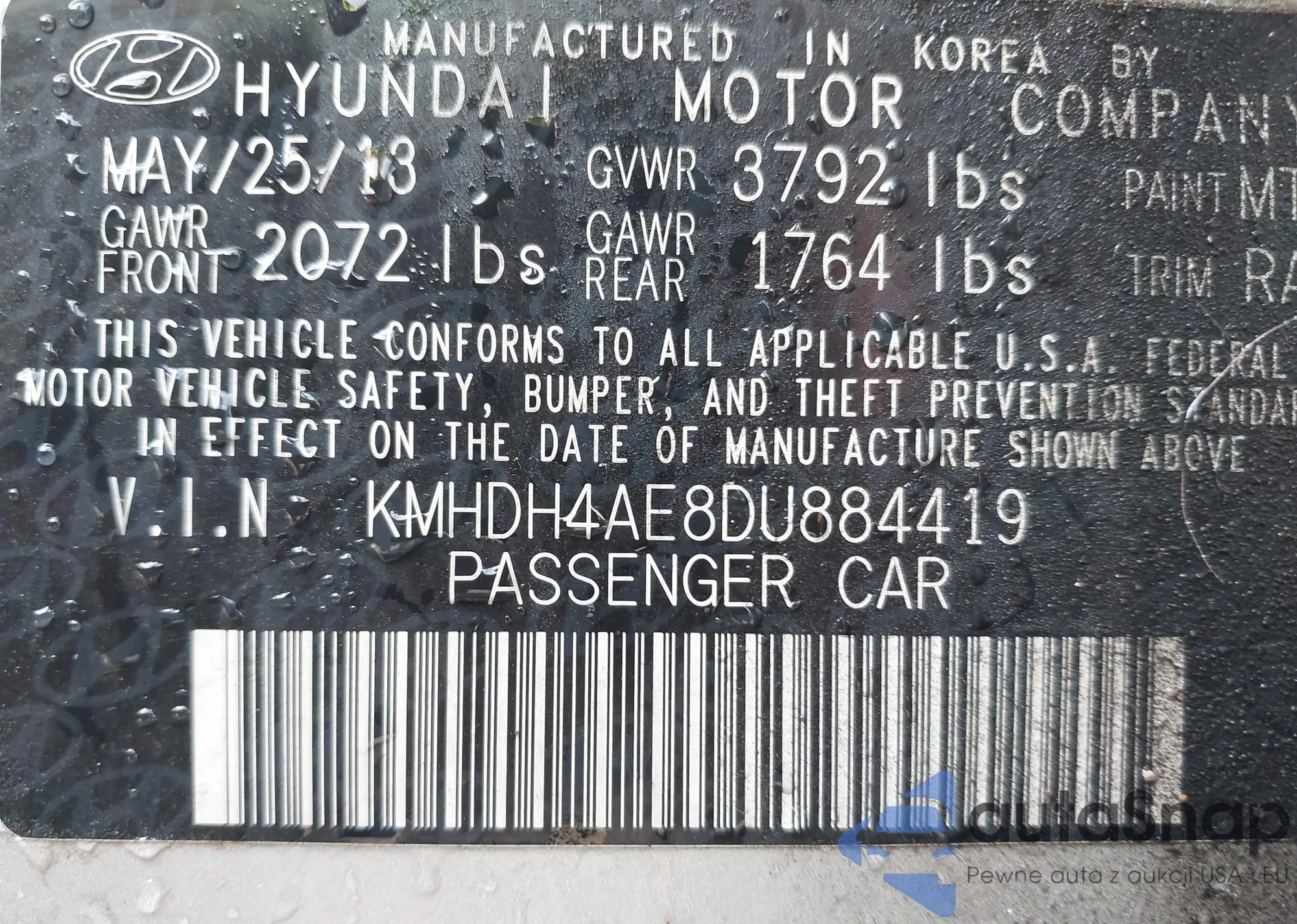 VIN: KMHDH4AE8DU884419