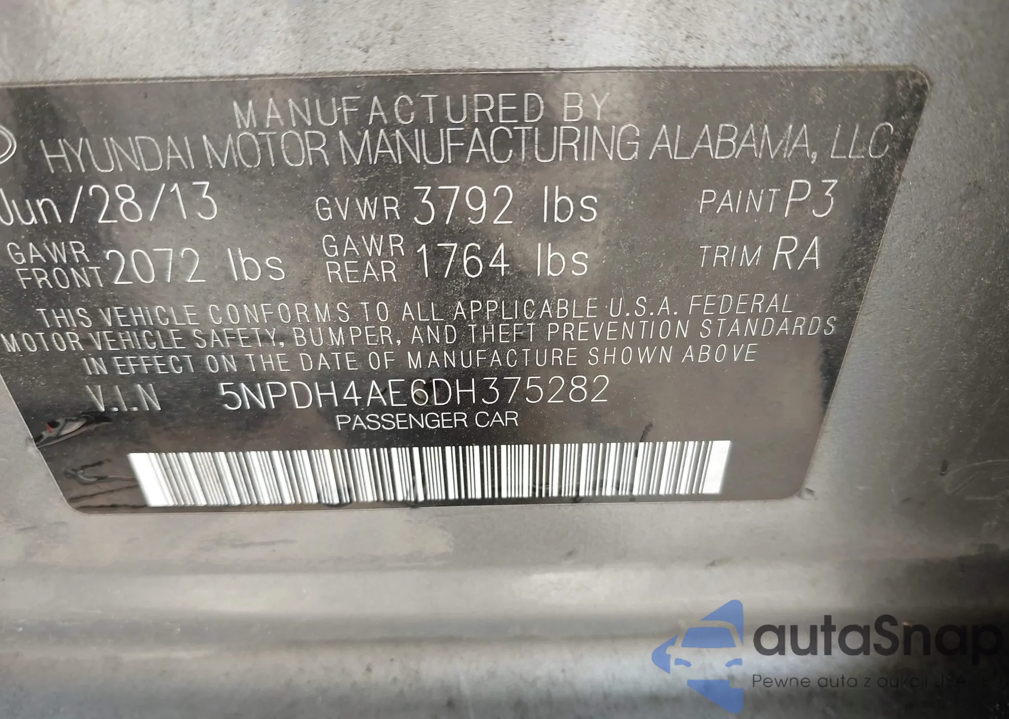 VIN: 5NPDH4AE6DH375282