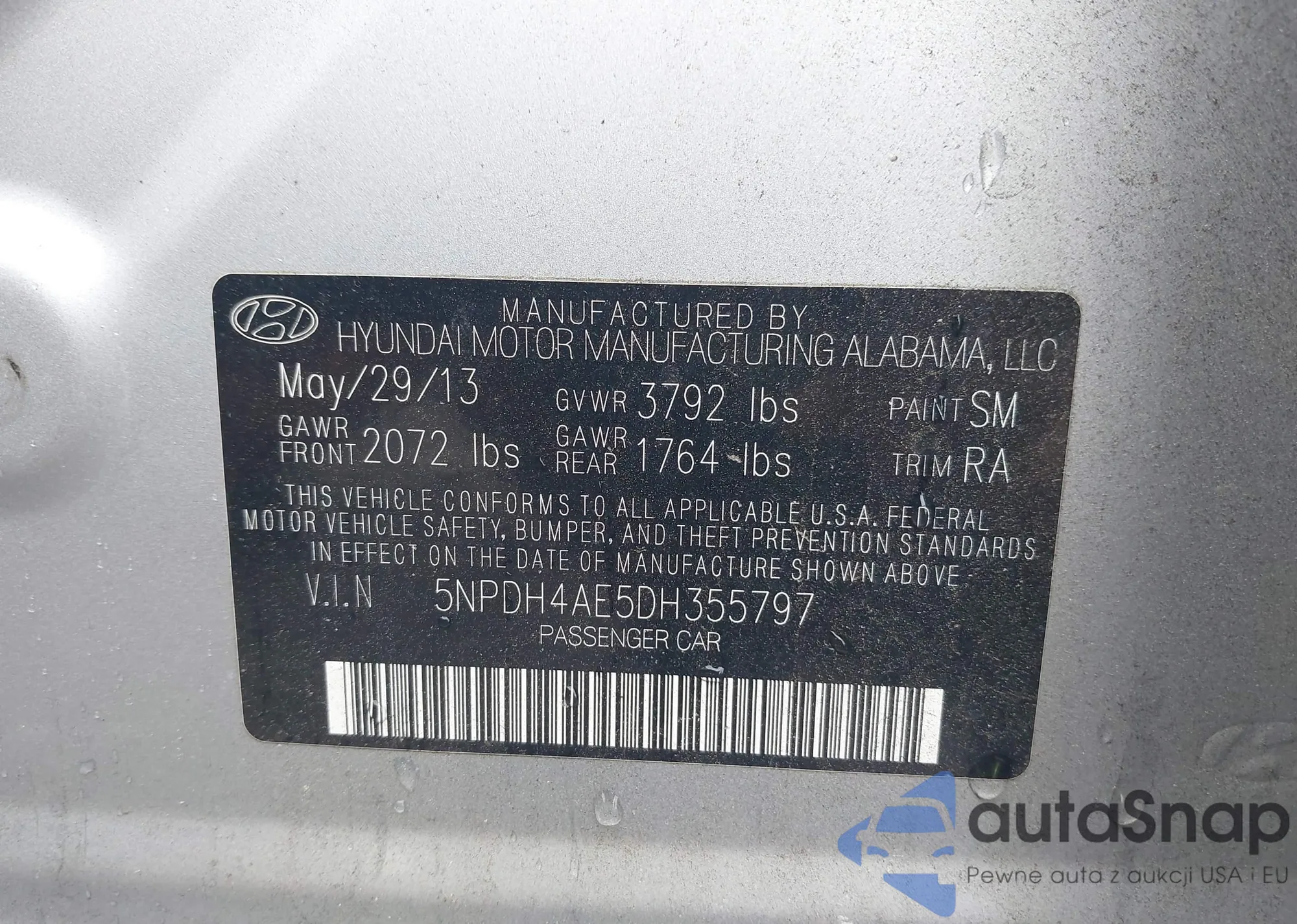 VIN: 5NPDH4AE5DH355797
