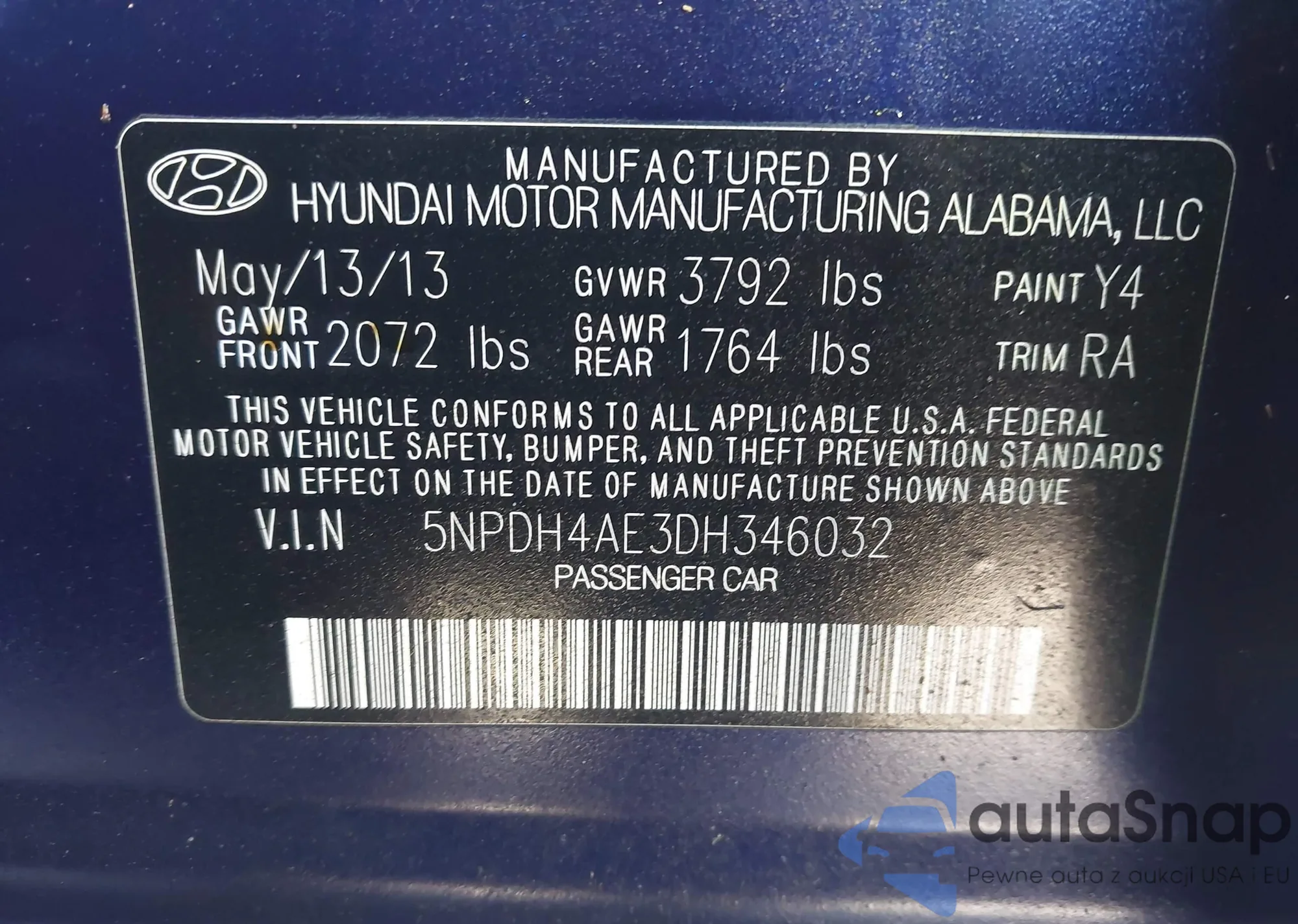 VIN: 5NPDH4AE3DH346032